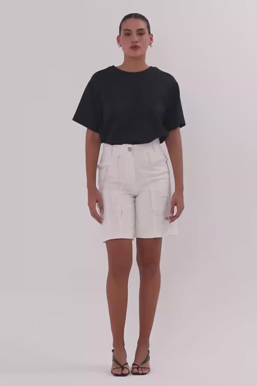 Dikiş Detaylı Kapaklı Cepli Jean Şort
