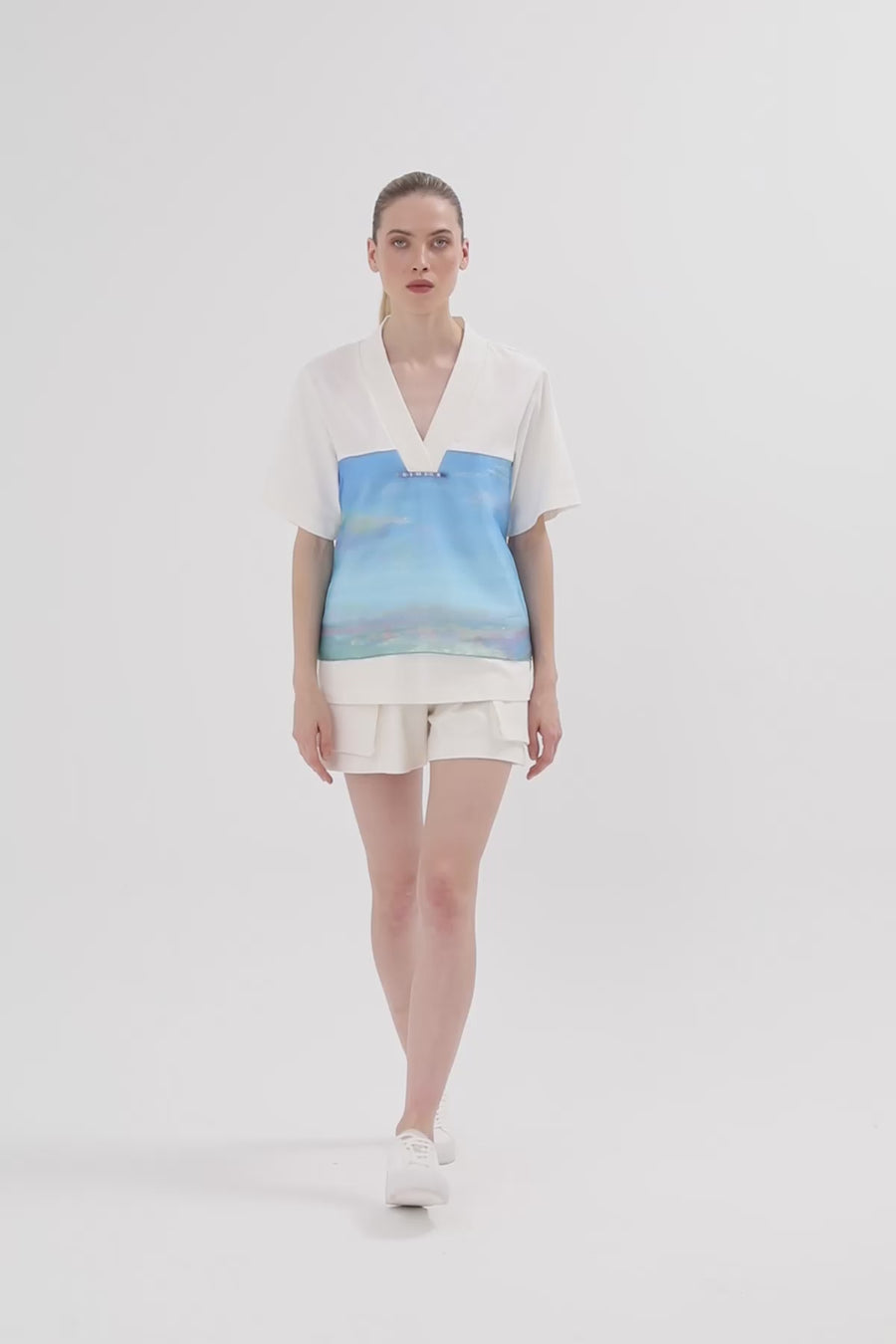 Önü Fermuarlı Arkada Baskılı Bluz