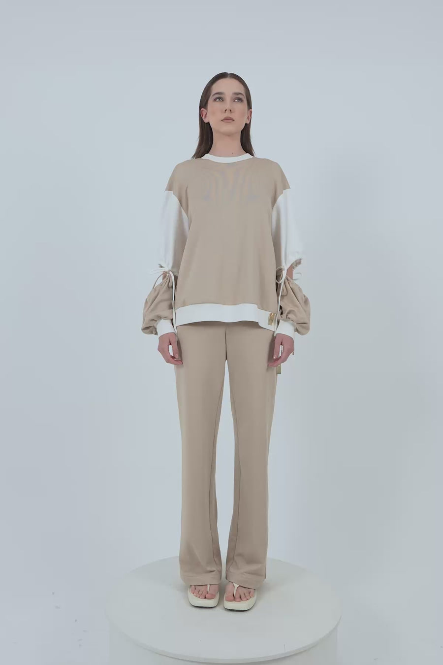 V Yaka Şerit Aksesuar Detaylı Örme Tshirt