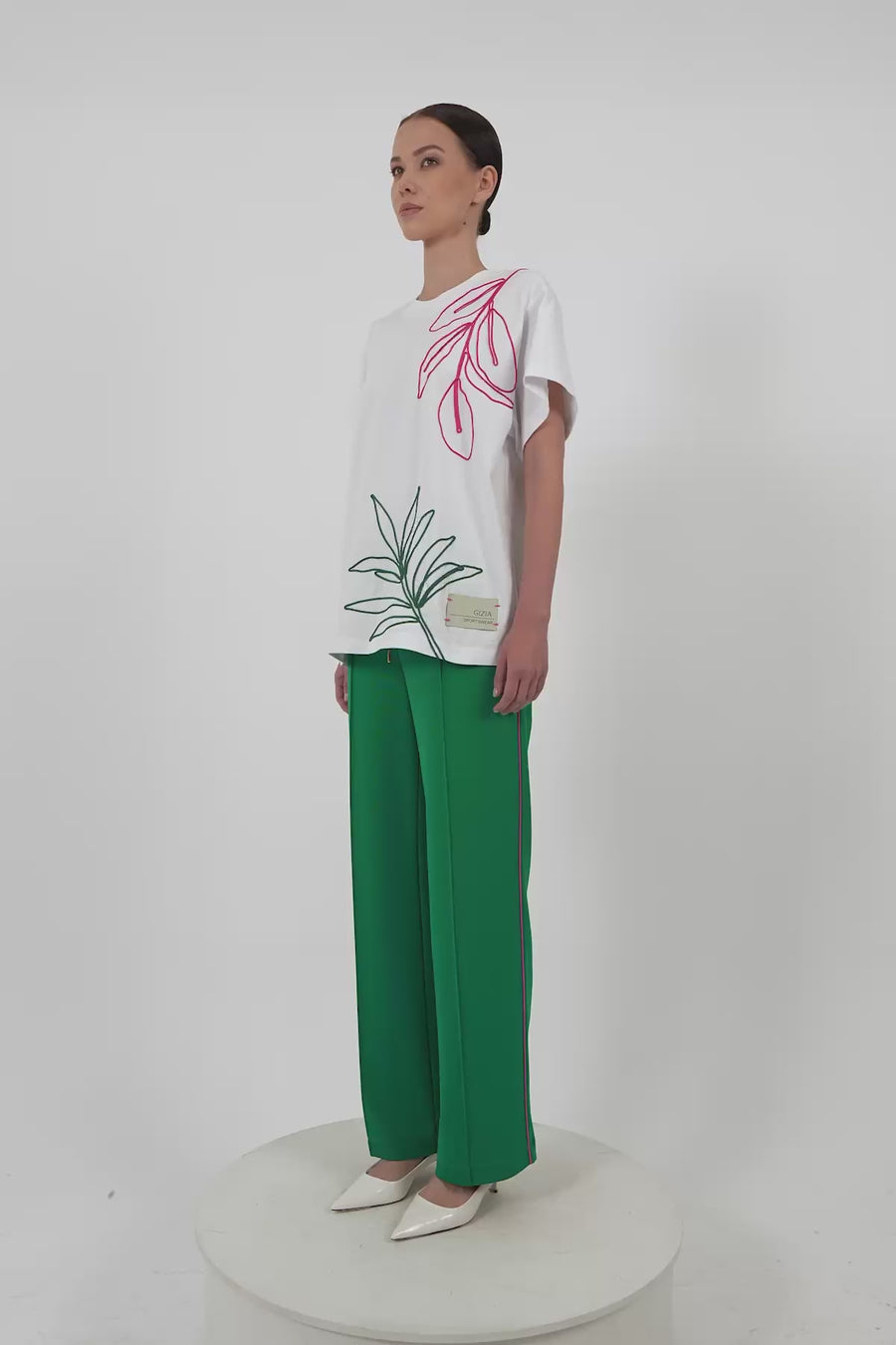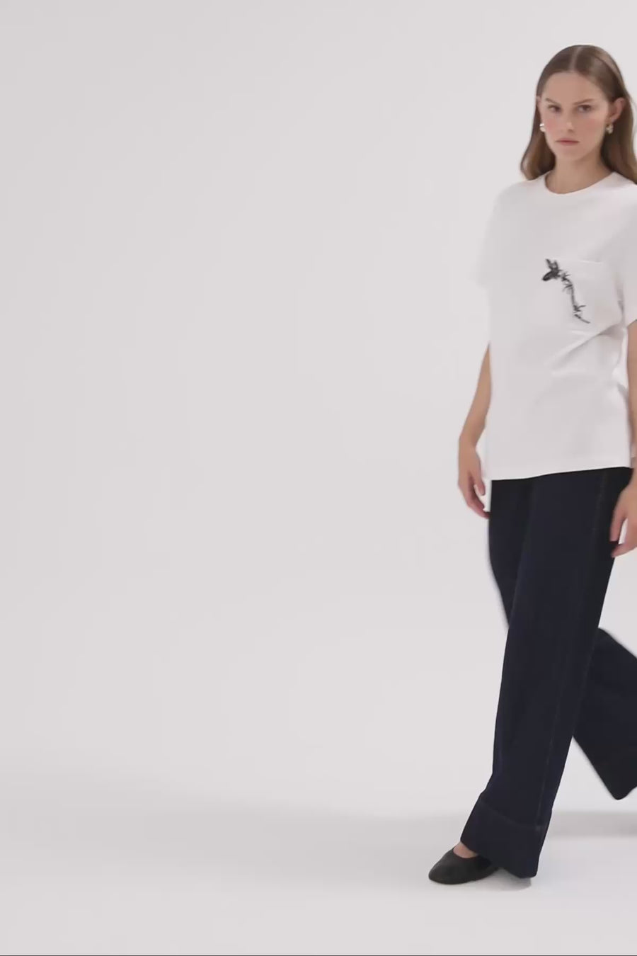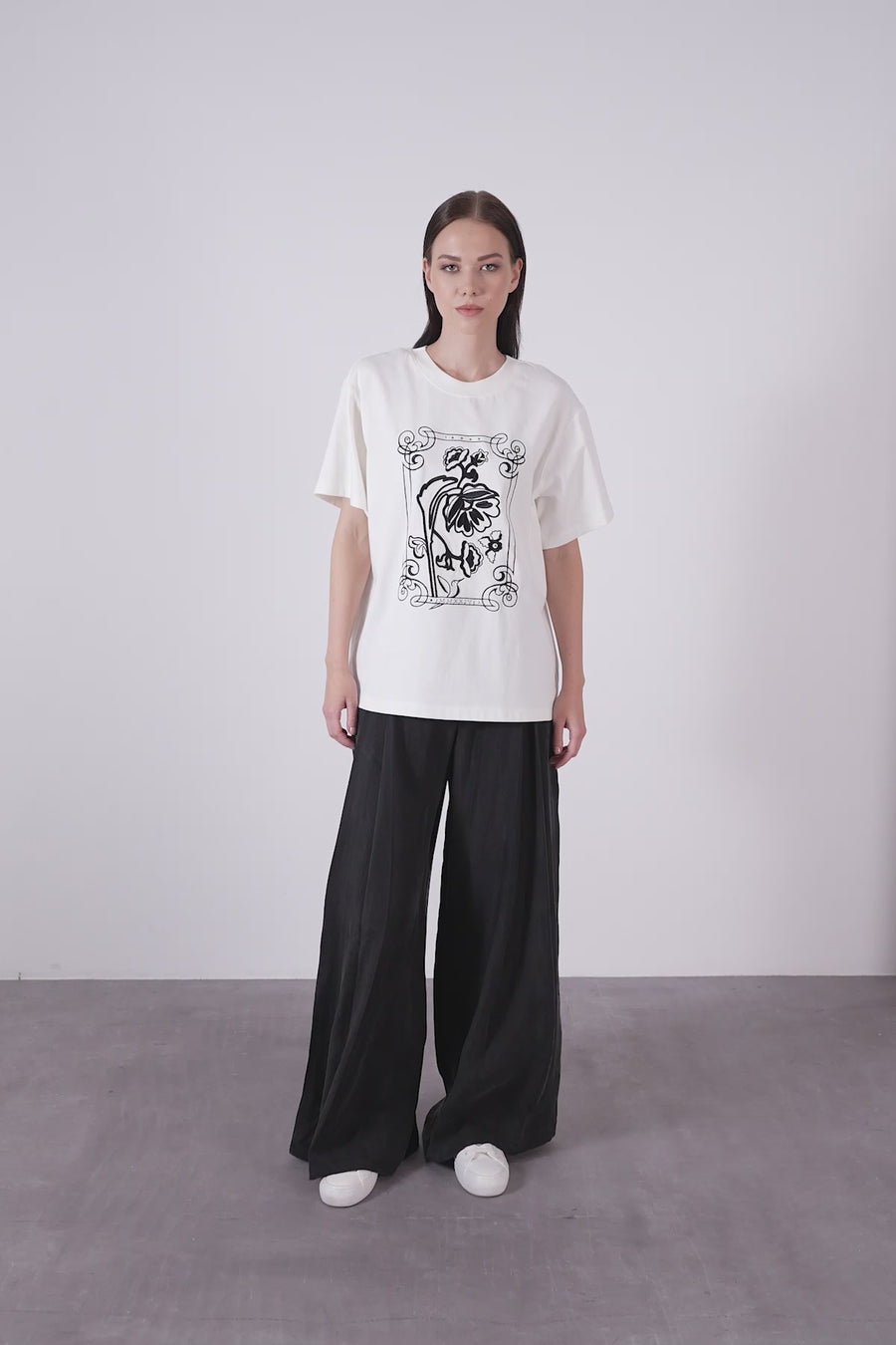 İşleme Detaylı Kısa Kollu Pamuklu Tshirt