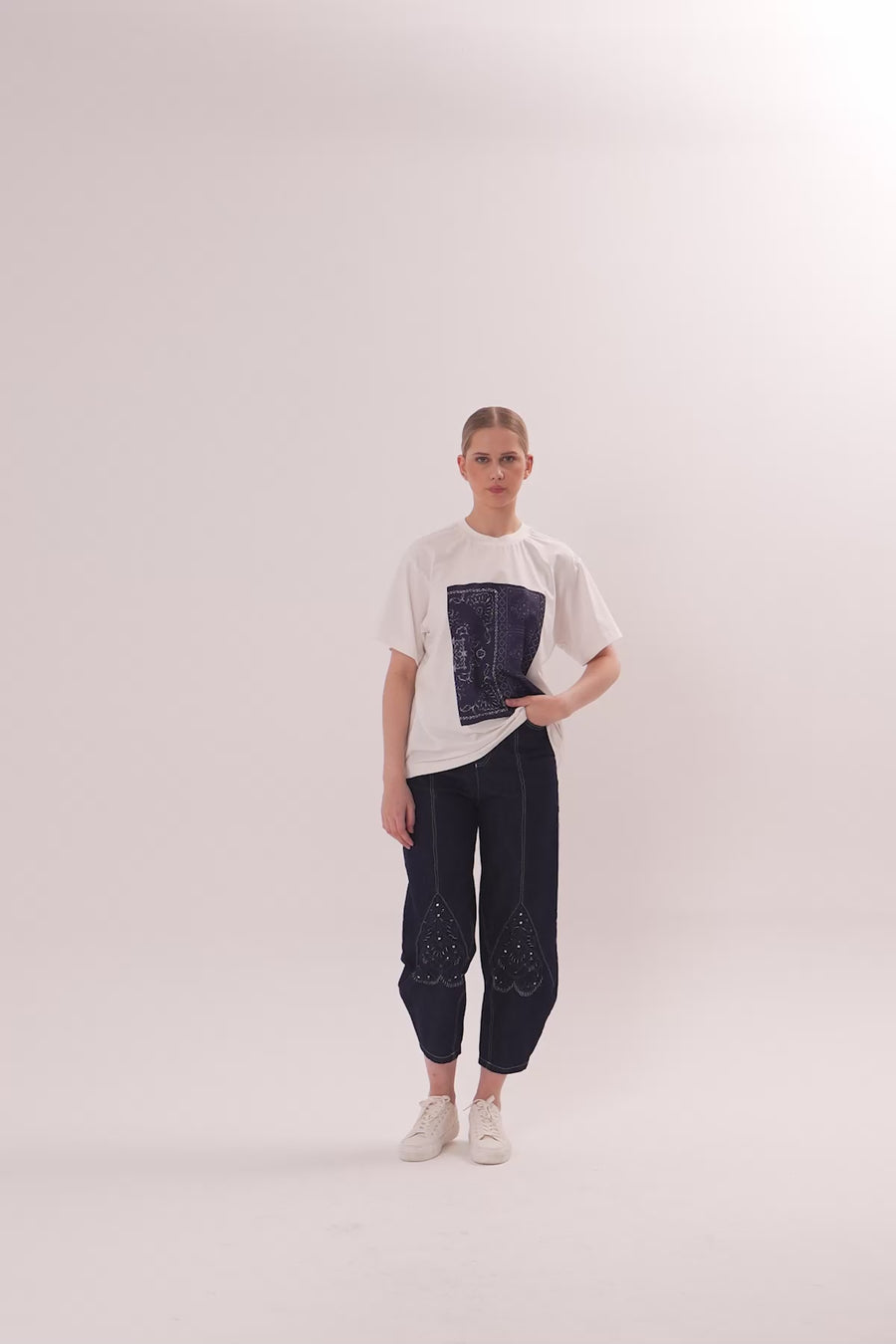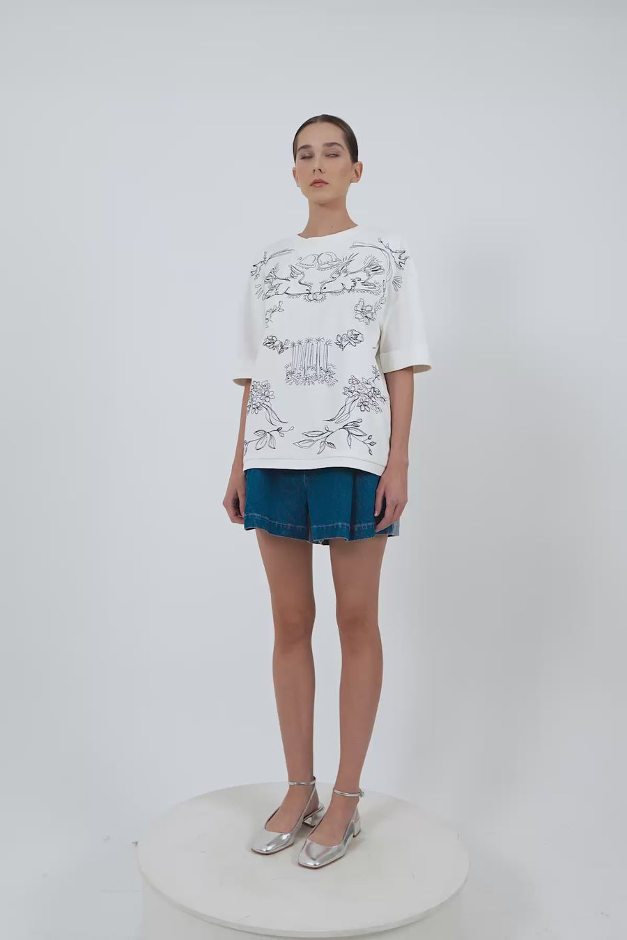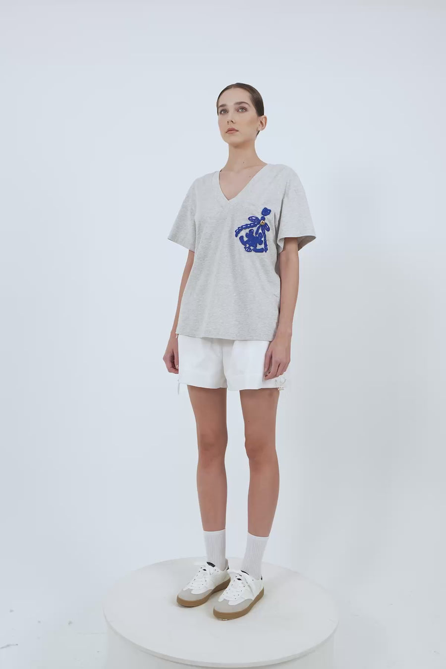 İşleme Detaylı Kısa Kollu Pamuklu Tshirt