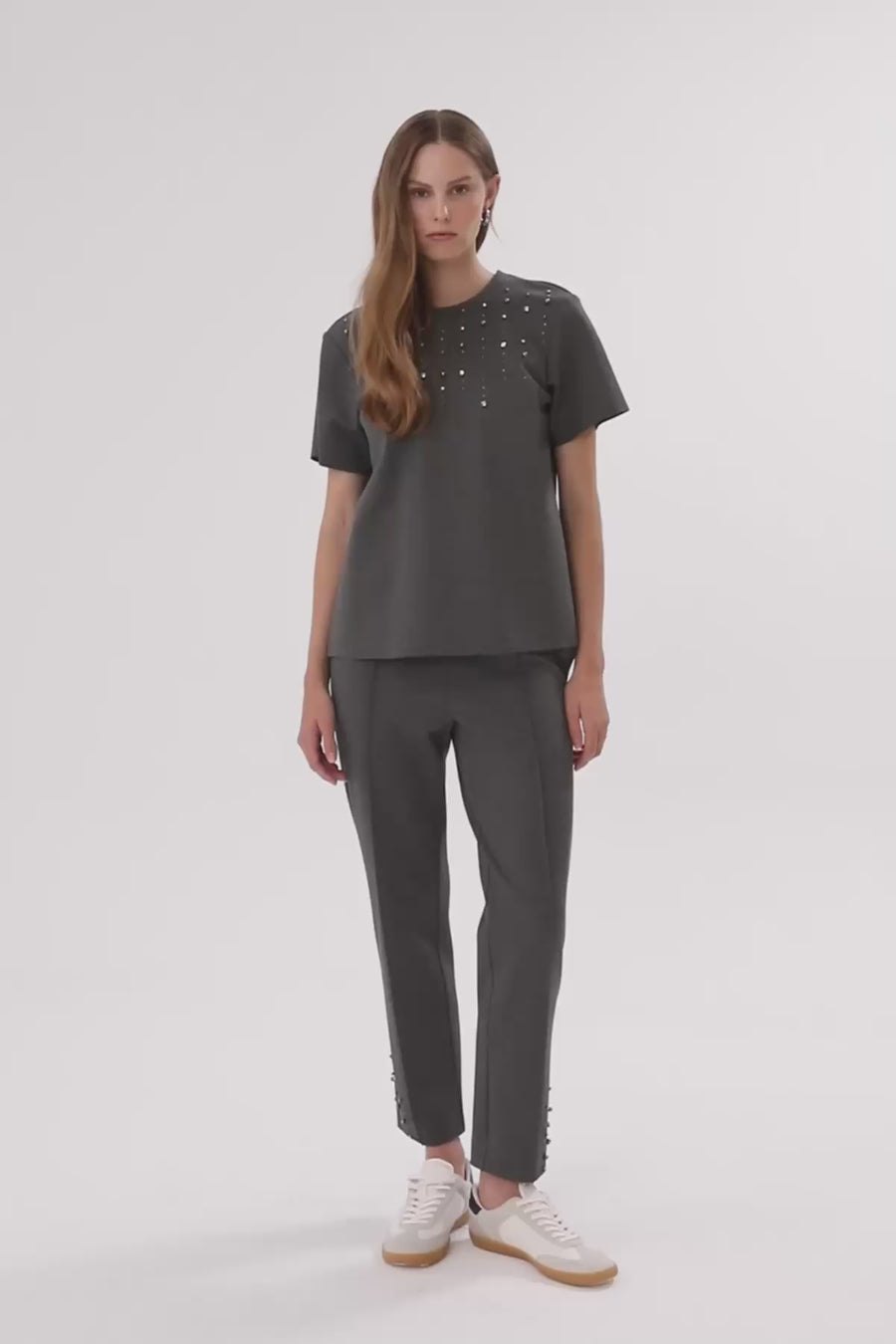İnci Ve Detaylı Kısa Kollu T-shirt