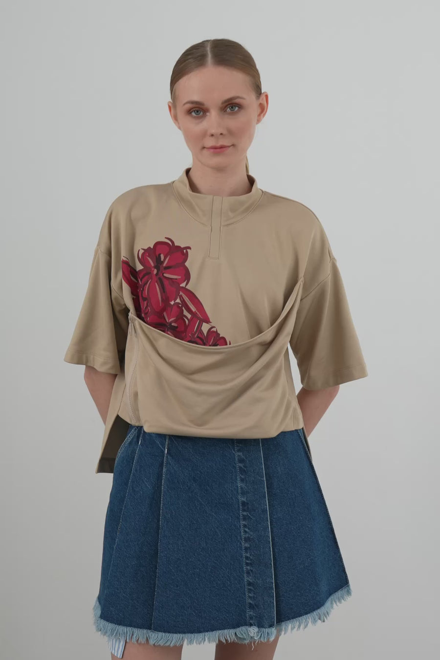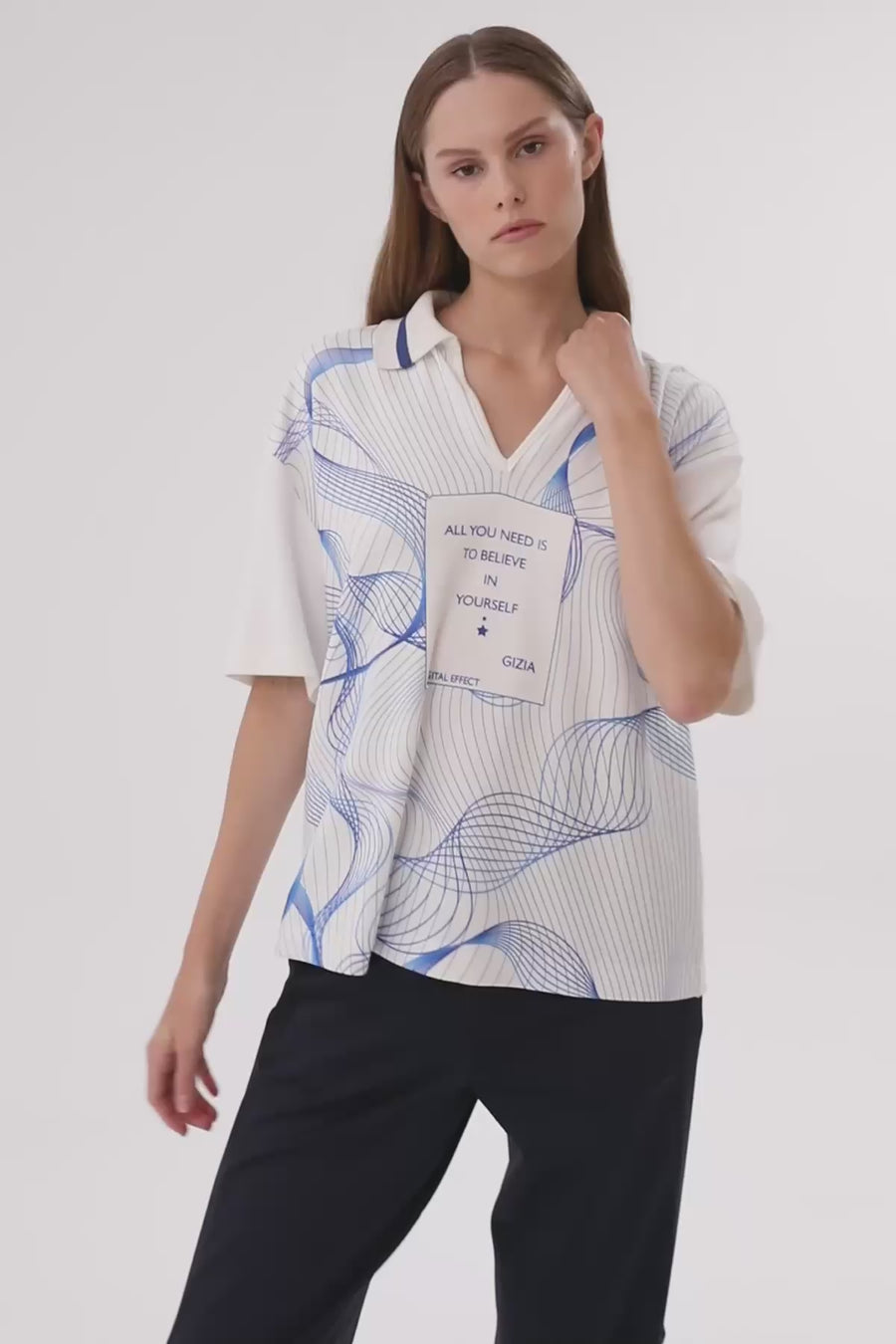 Balıkçı Yaka Baskılı Kısa Kollu Tişört