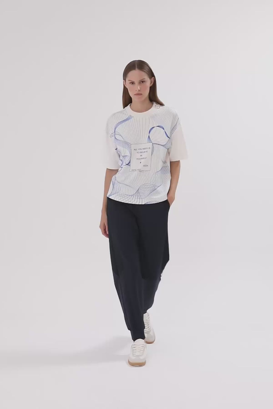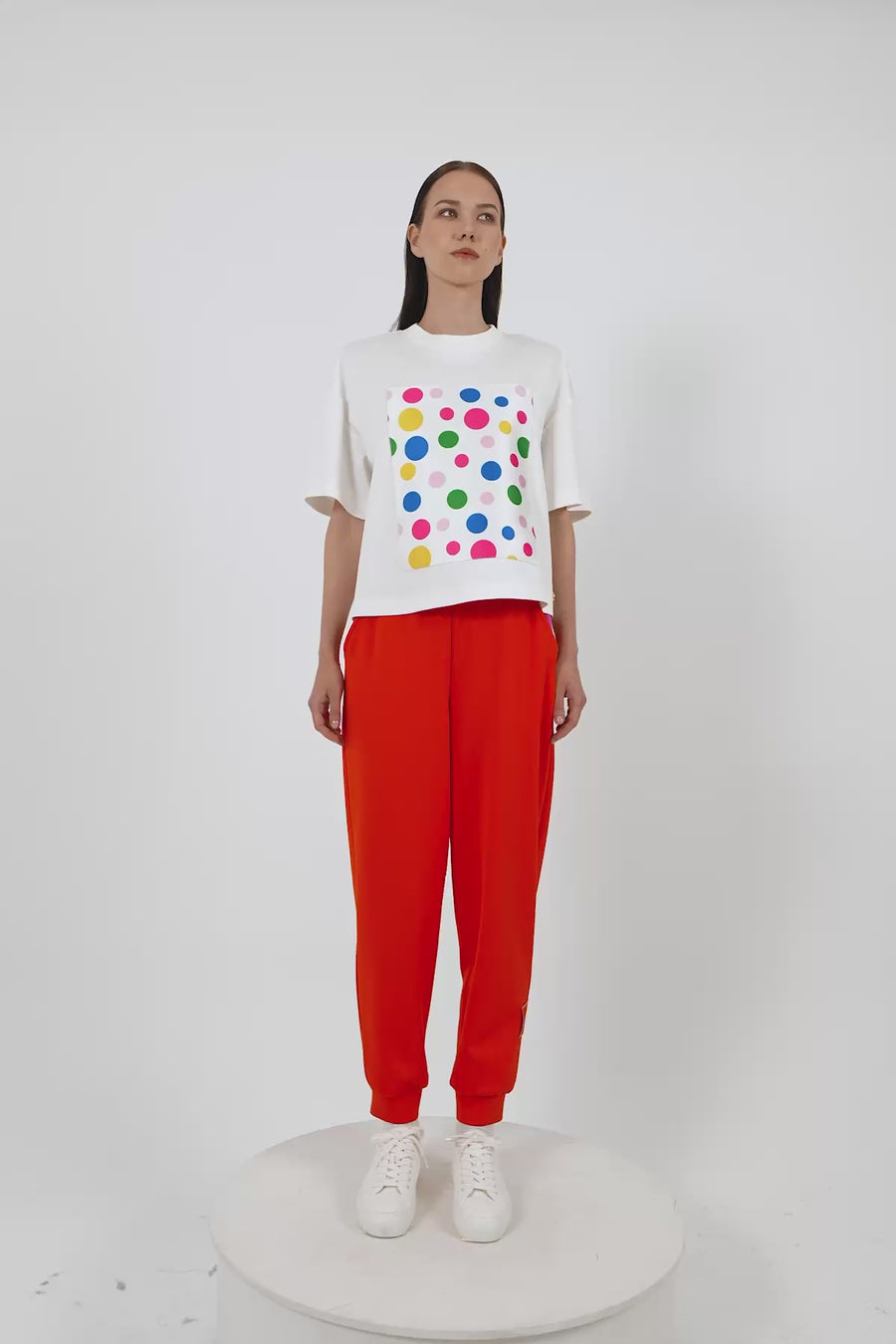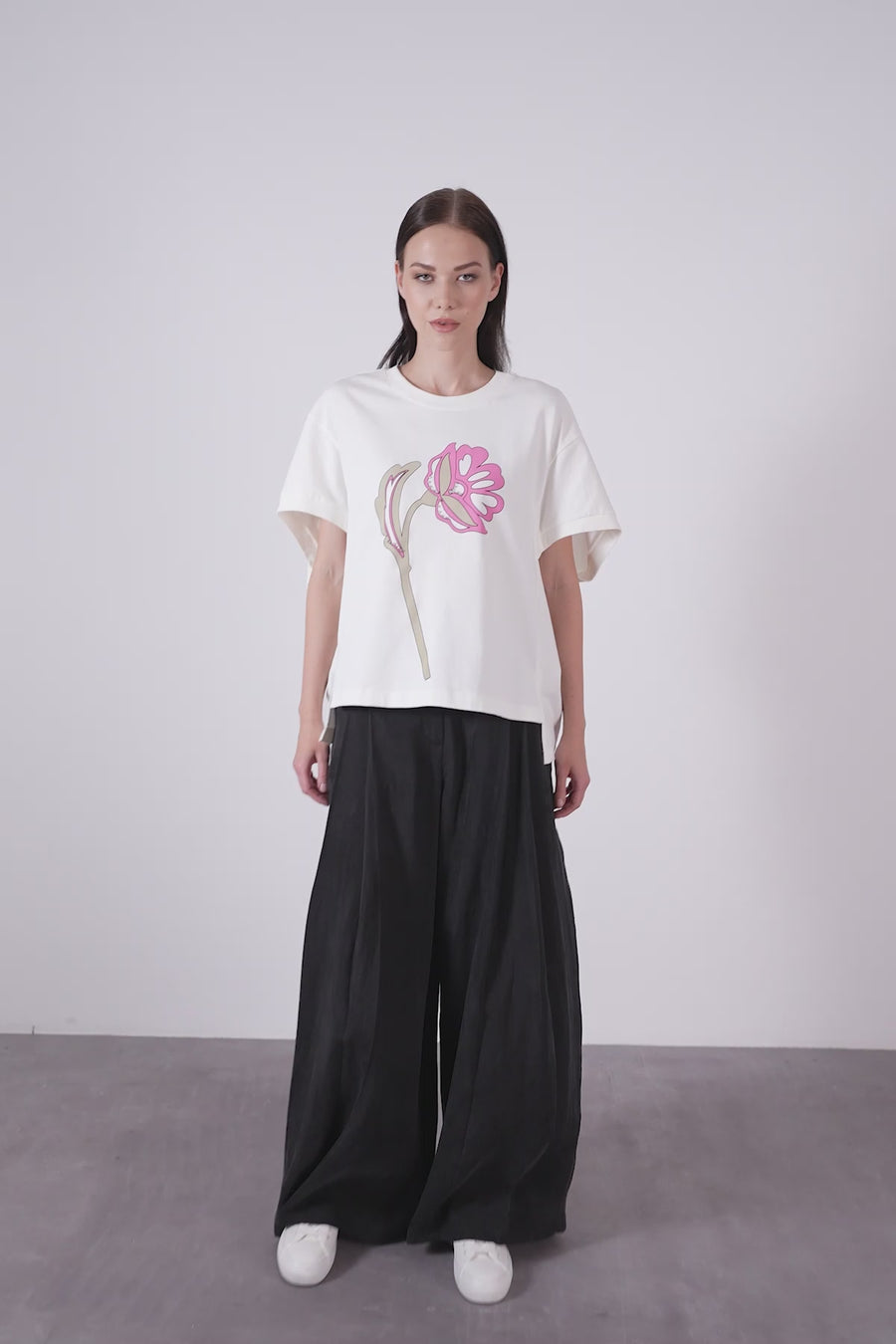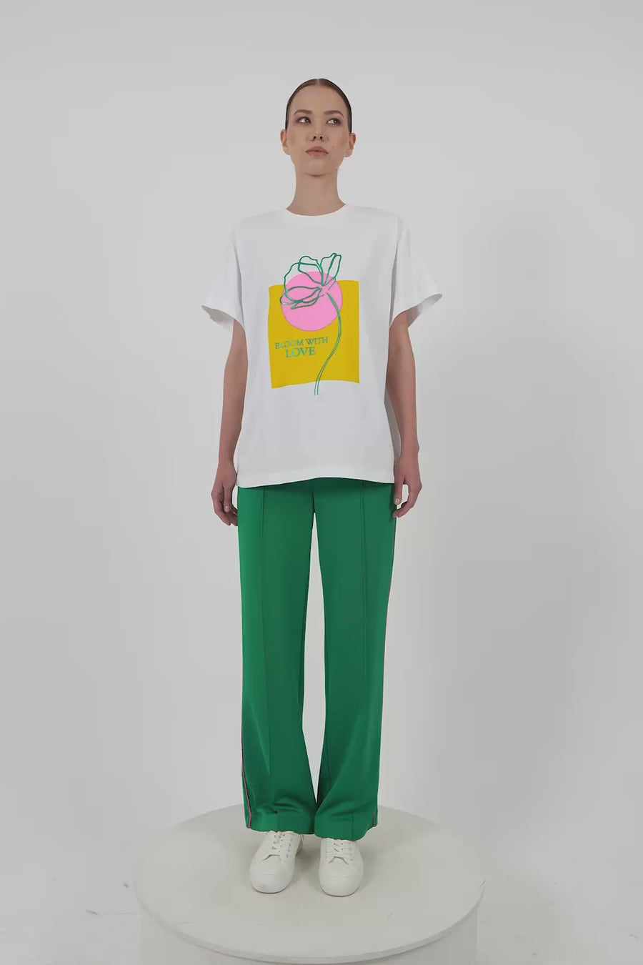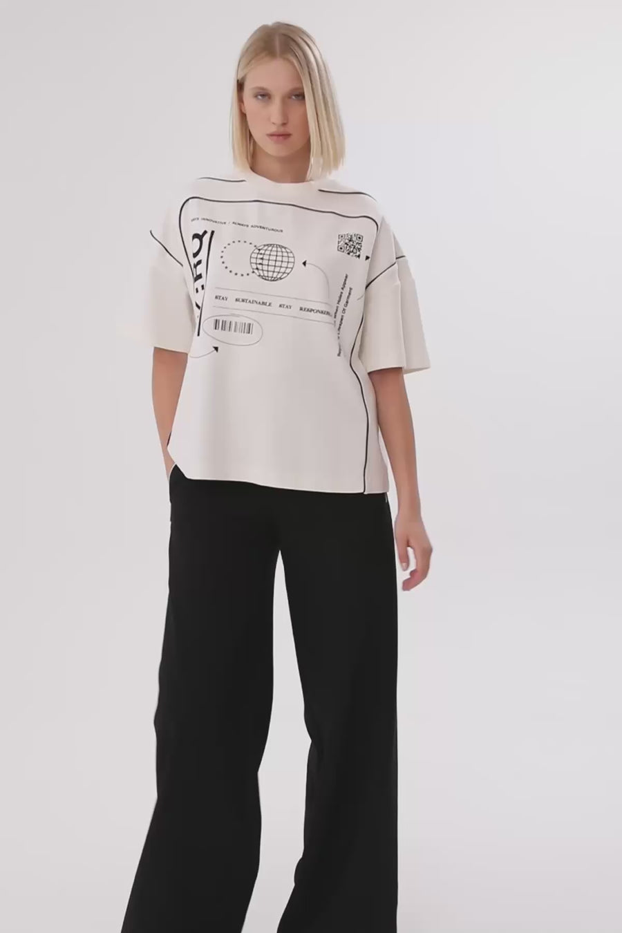 Baskı Detaylı Düşük Omuzlı Kısa Kollu Basic Tshirt