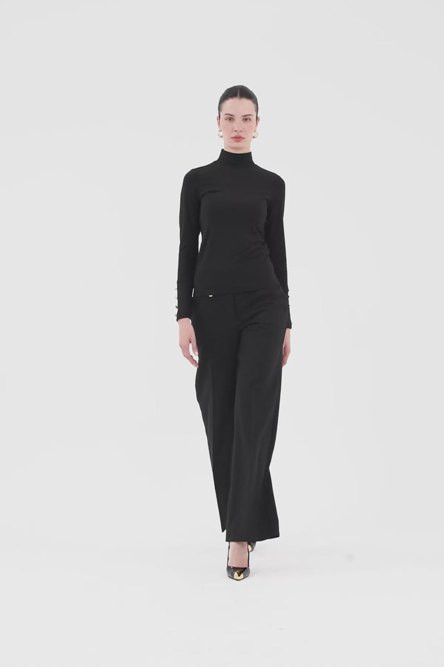 Yakası Fermuarlı Kolları Aksesuarlı Bluz