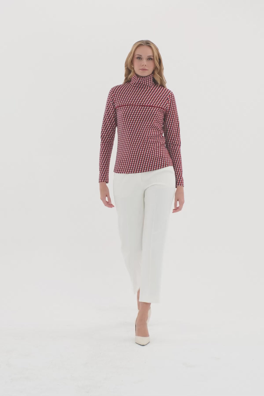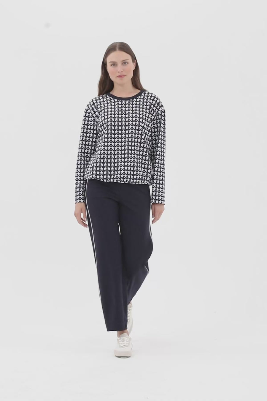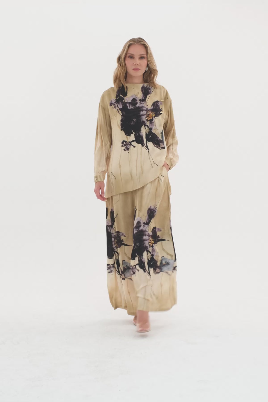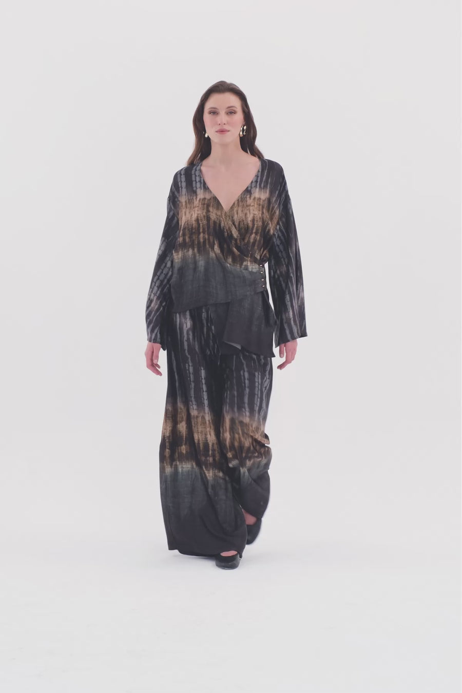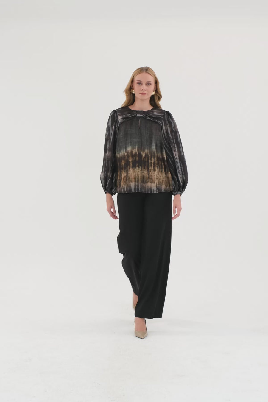 Yakadan Bağlamalı Uzun Kollu Desenli Bluz