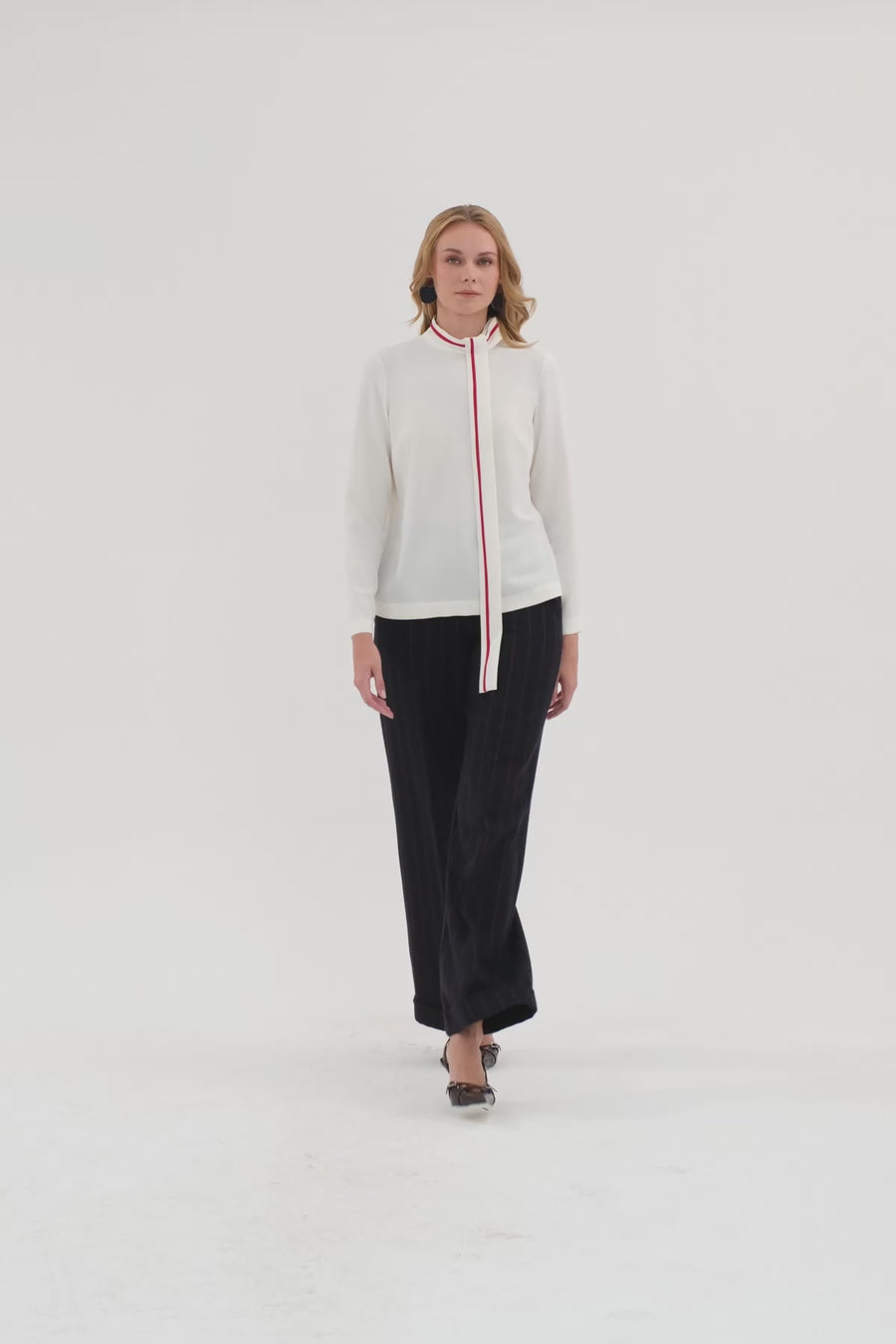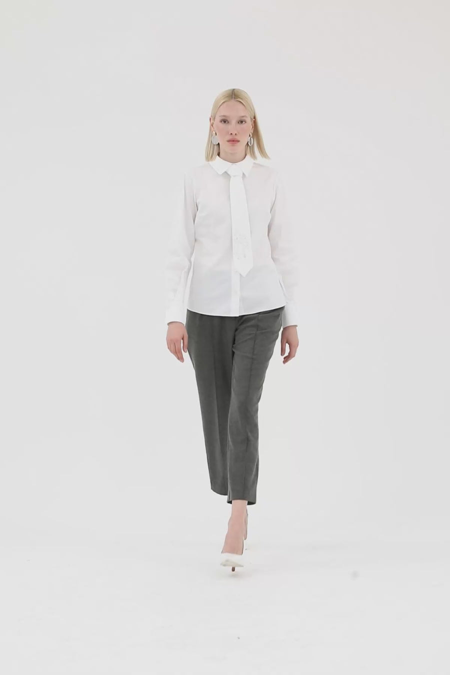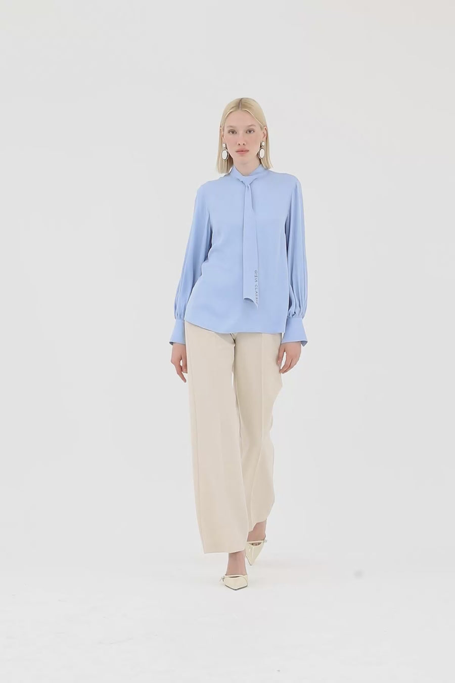 Yakası Bağlamalı Kolları Düğmeli Kadın Bluz