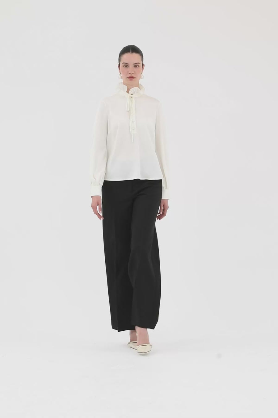 Yakası Fırfır Detaylı Bağlamalı Bluz