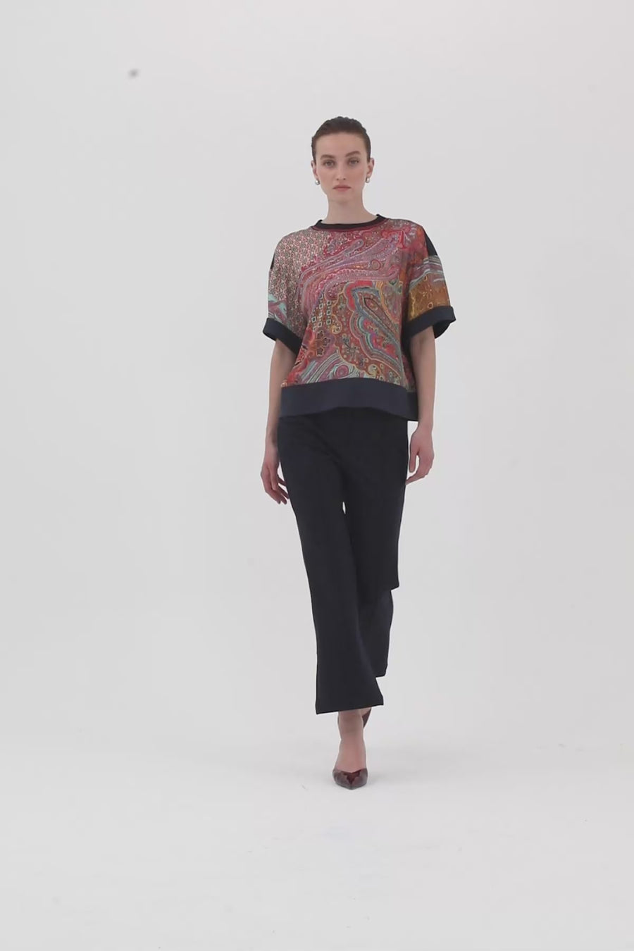 Kayık Yakalı Aksesuar Detaylı Desenli Viskon Bluz