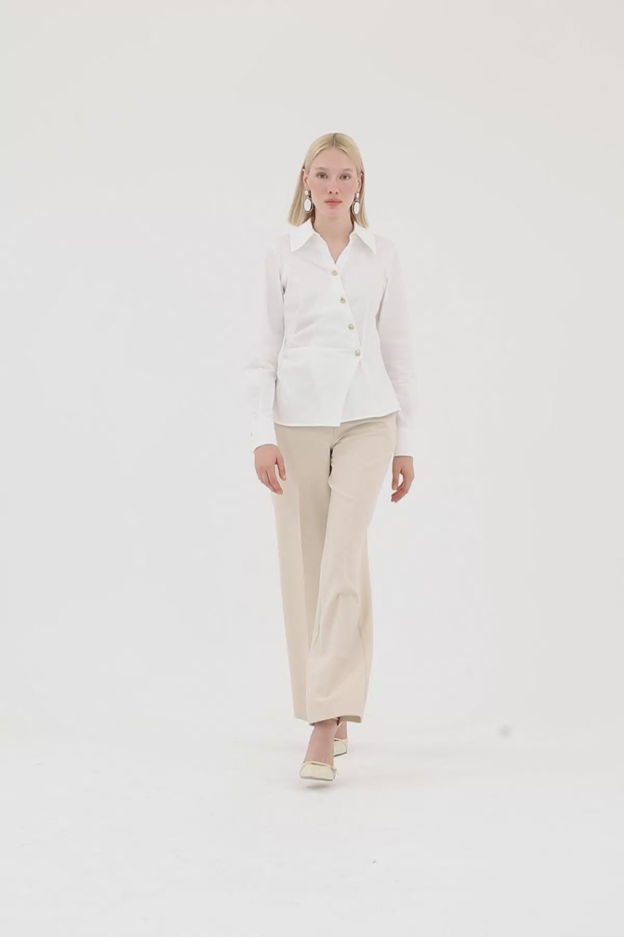 Pensli Düğme Kapamalı Düğmeli Bluz