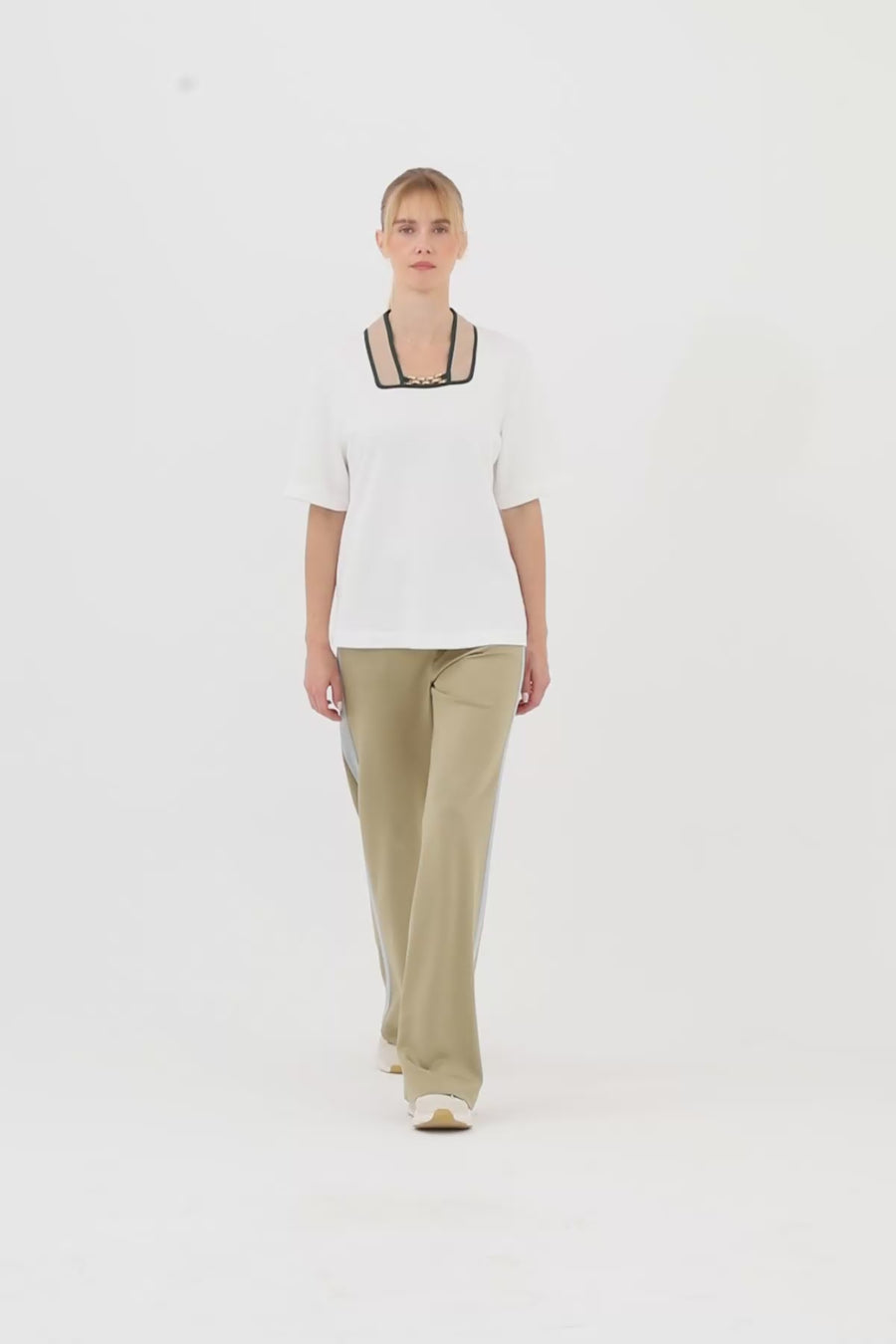 Yakası Fermuarlı G Logo Baskılı Bluz