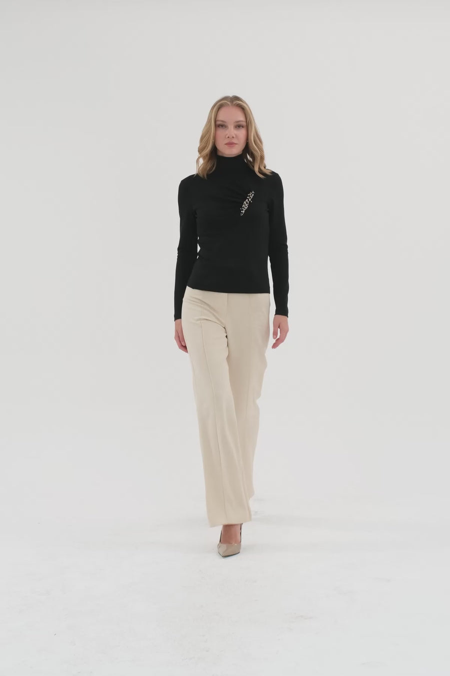Boğazlı Yakalı Önden Parçalı Uzun Kollu Bluz