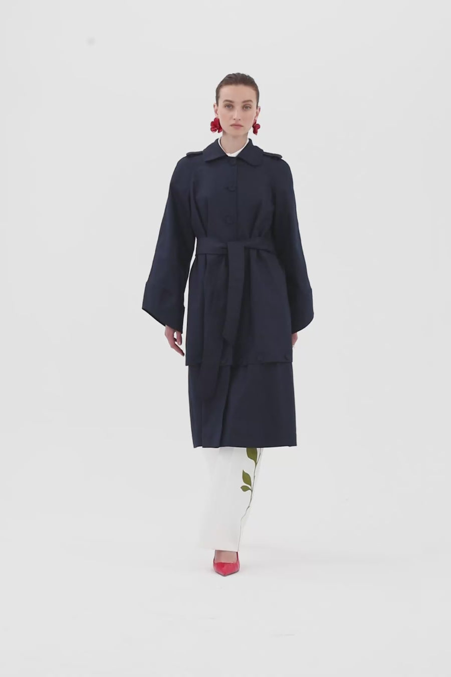 Geniş Kol Detaylı Alttan Düğmeli Trençkot
