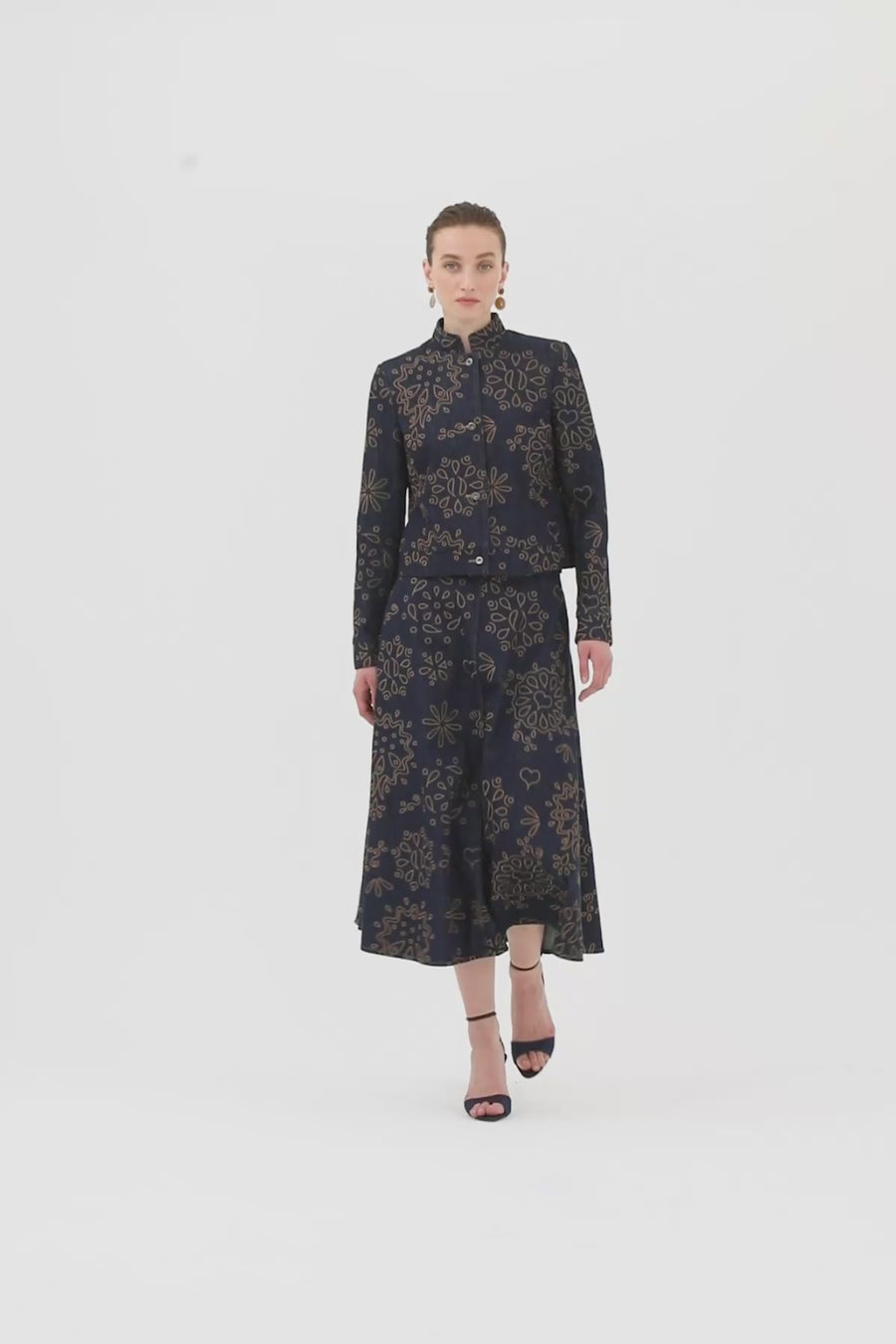 Gömlek Yakalı Yanlardan Ayarlanabilir Bağcıklı Desenli Ceket