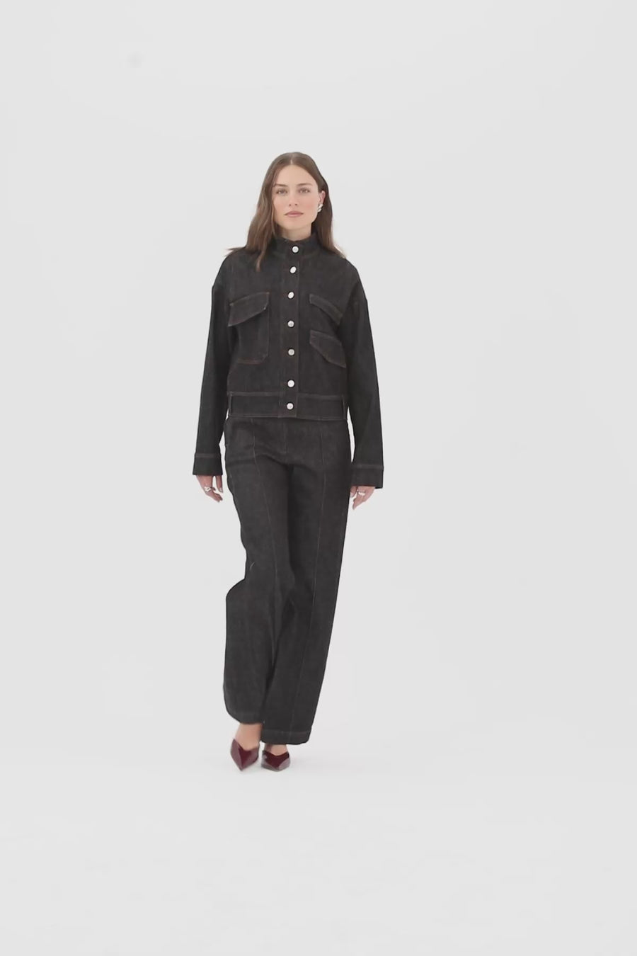 Dik Yakacepli Düğme Kapamalı Uzun Kollu Ceket