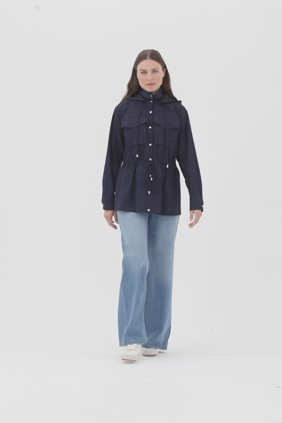 Beli Bağcıklı Büzgü Detaylı İşlemeli Yağmurluk