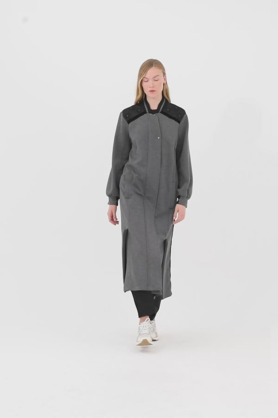 Yakası Triko Detaylı Ön Orta Apoletli Ceket