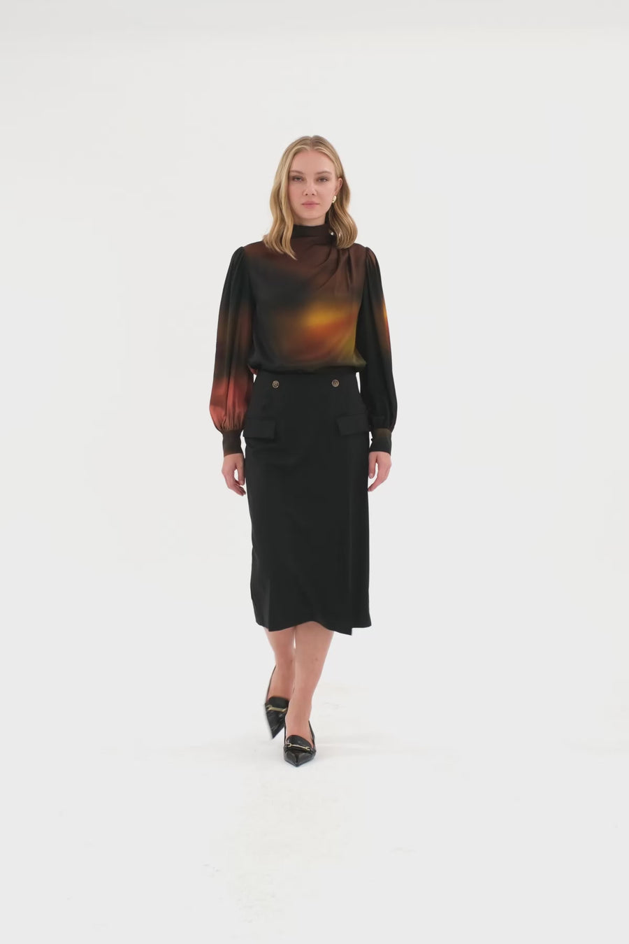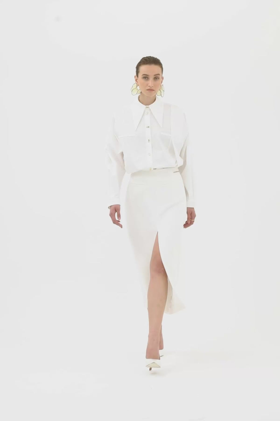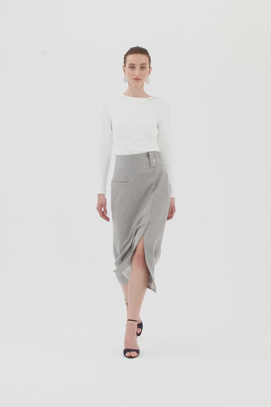Kemer Detaylı Yırtmaçlı Kalem Etek