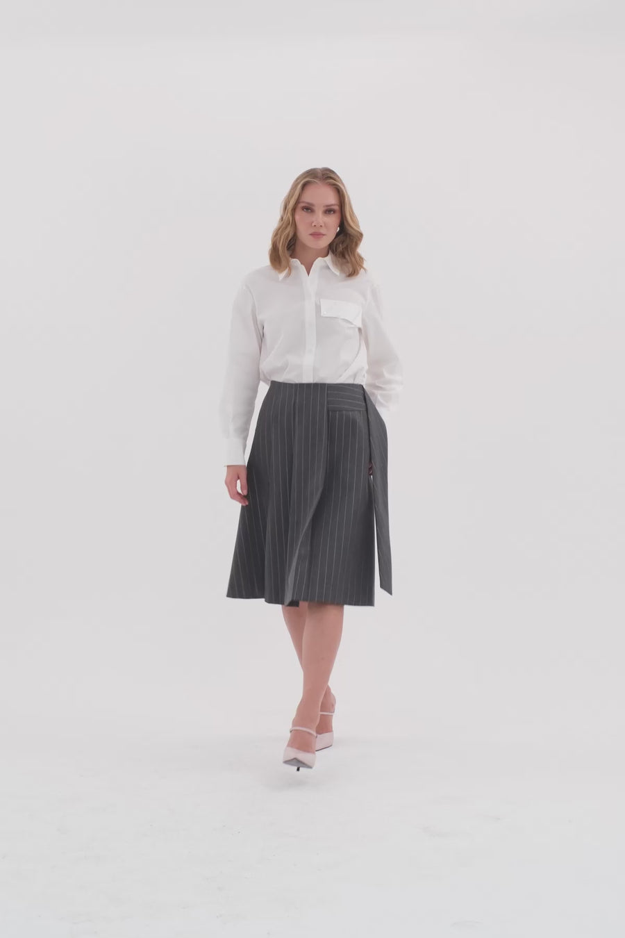 Metal Kemer Aksesuarlı Çizgili Enim Etek