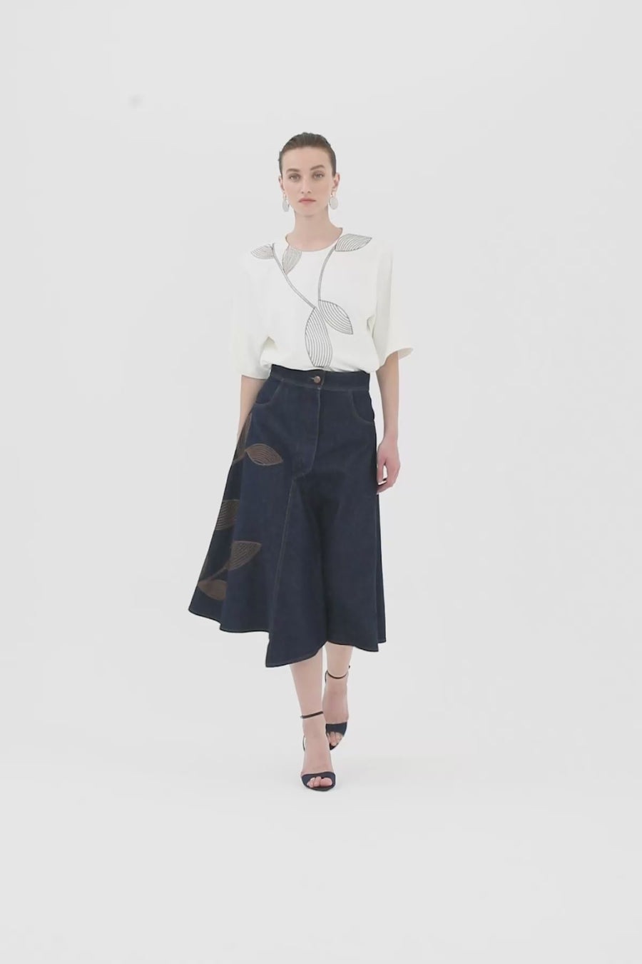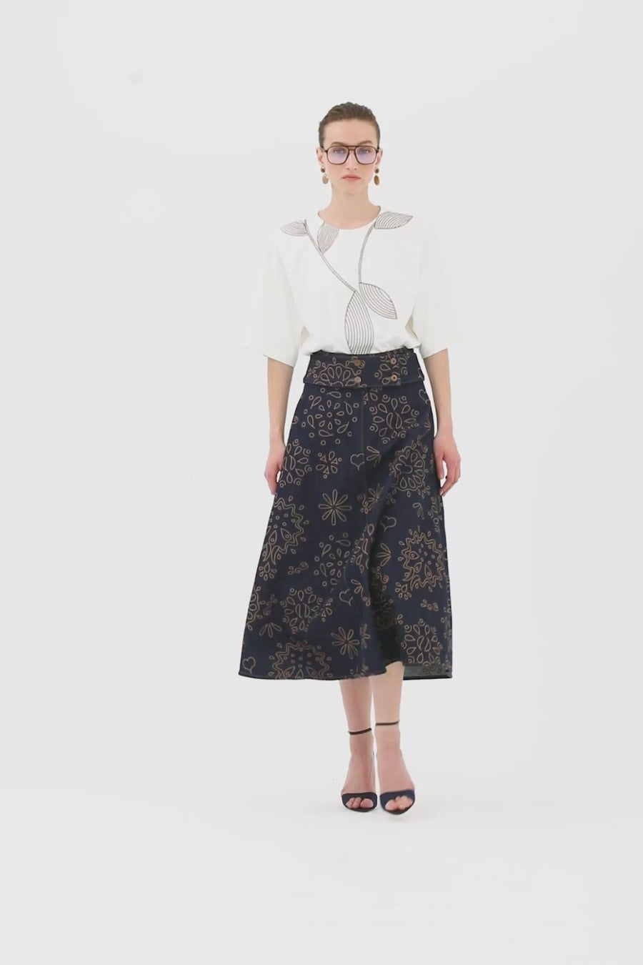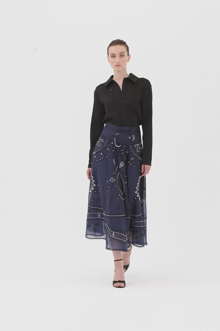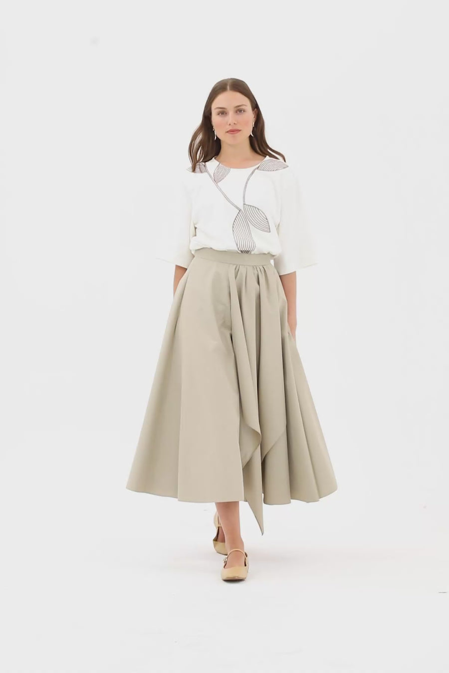 Yandan Fermuarlı Boncuk İşlemeli Kloş Etek