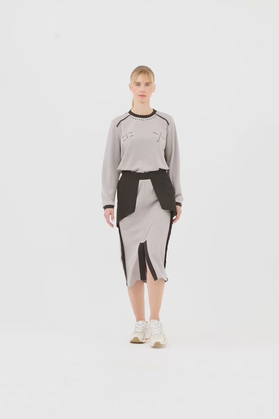 Logo Detaylı Yırtmaçlı Kalem Etek