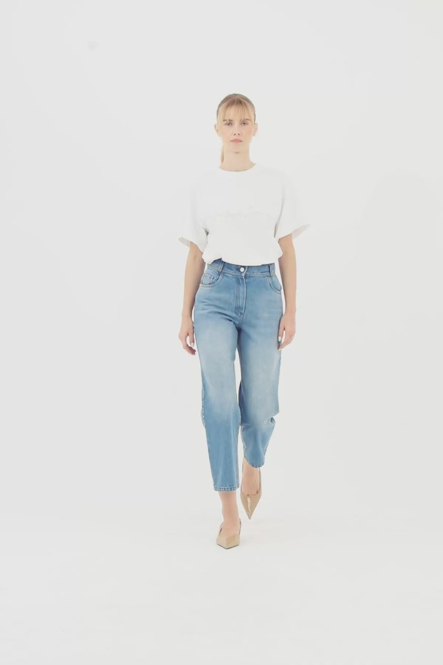Rivet Detaylı Yüksek Bel Jean Pantolon