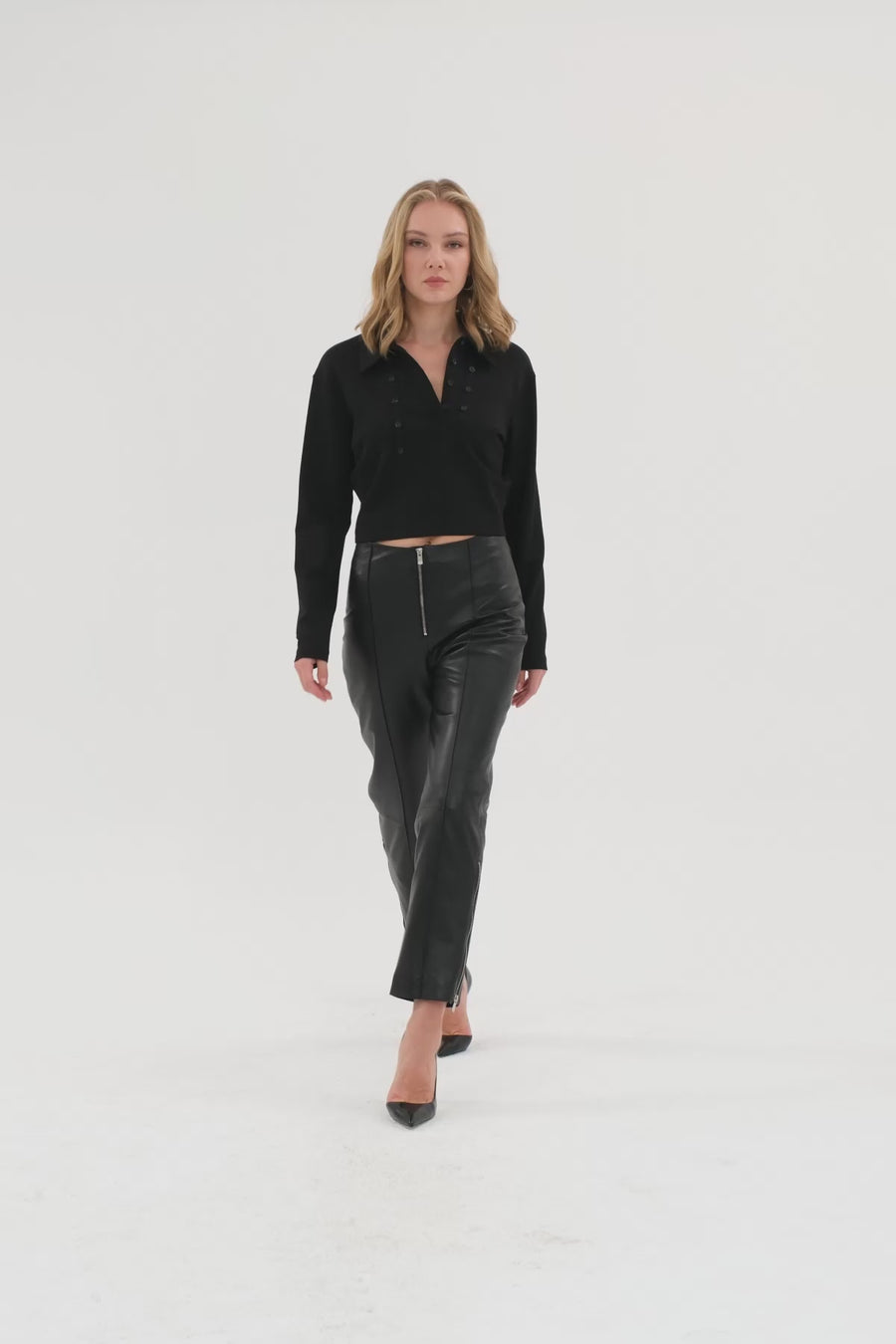 Paçaları Fermuarlı Deri Pantolon