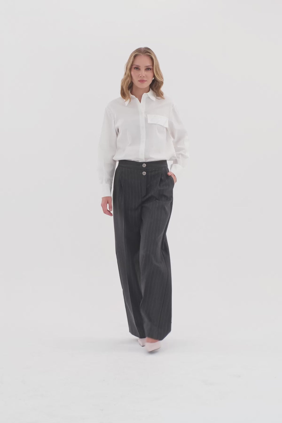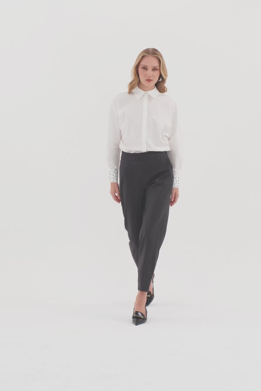 Pileli Agraf Kapamalı Pantolon