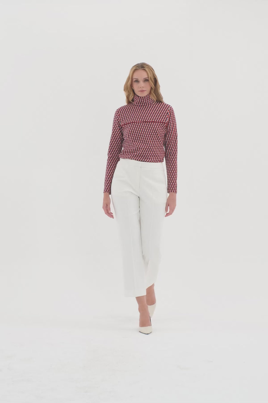 Desenli Yandan Fermuarlı Bel Triko Detaylı Pantolon