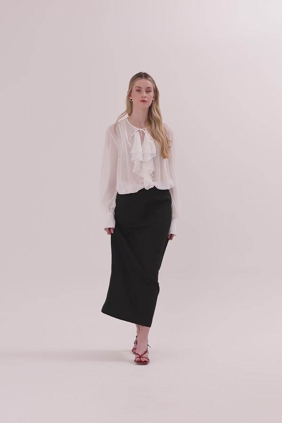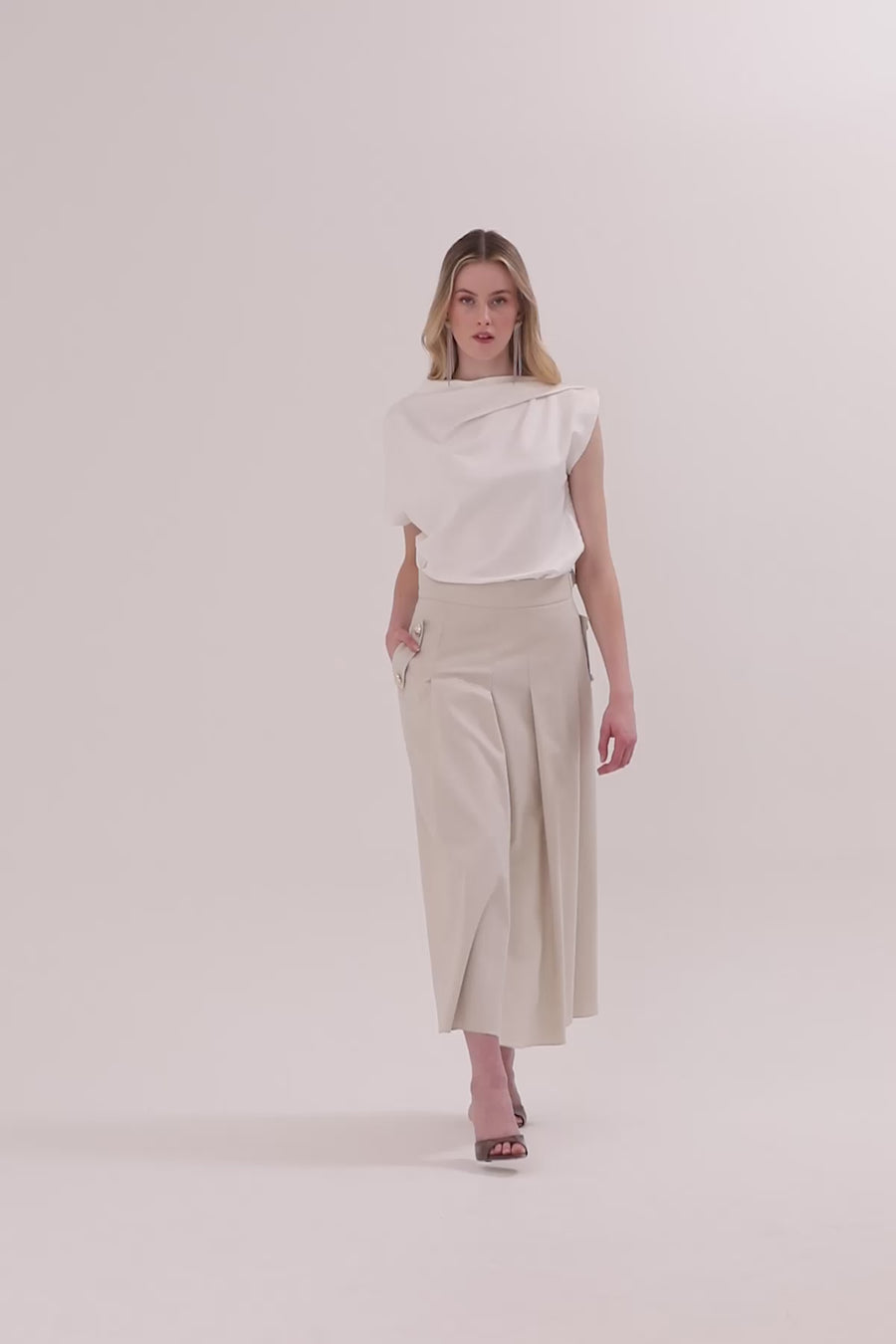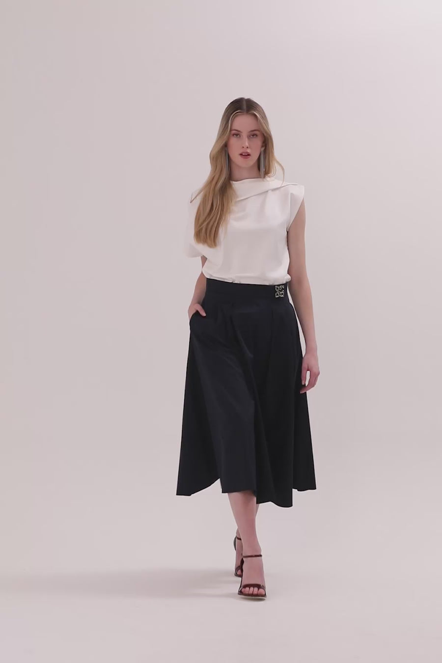 Yanları Yırtmaçlı Astarlı Midi Etek