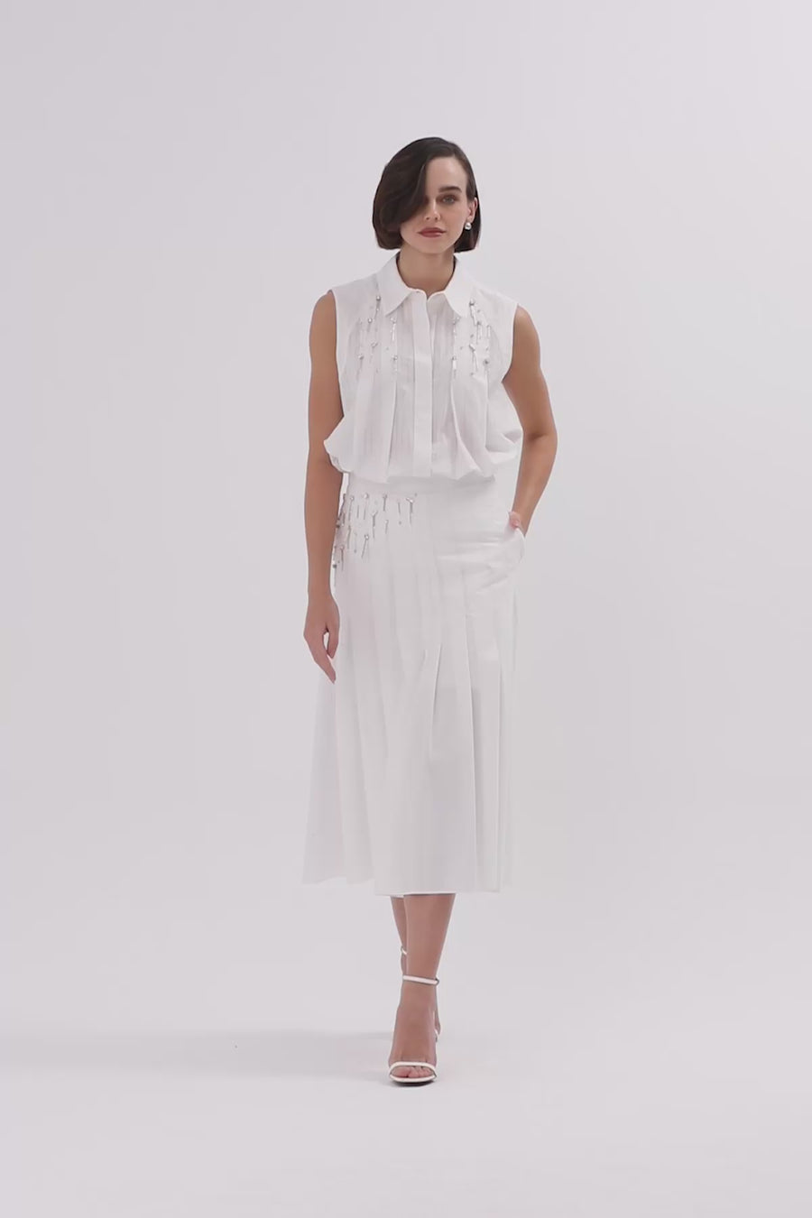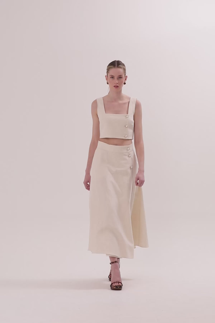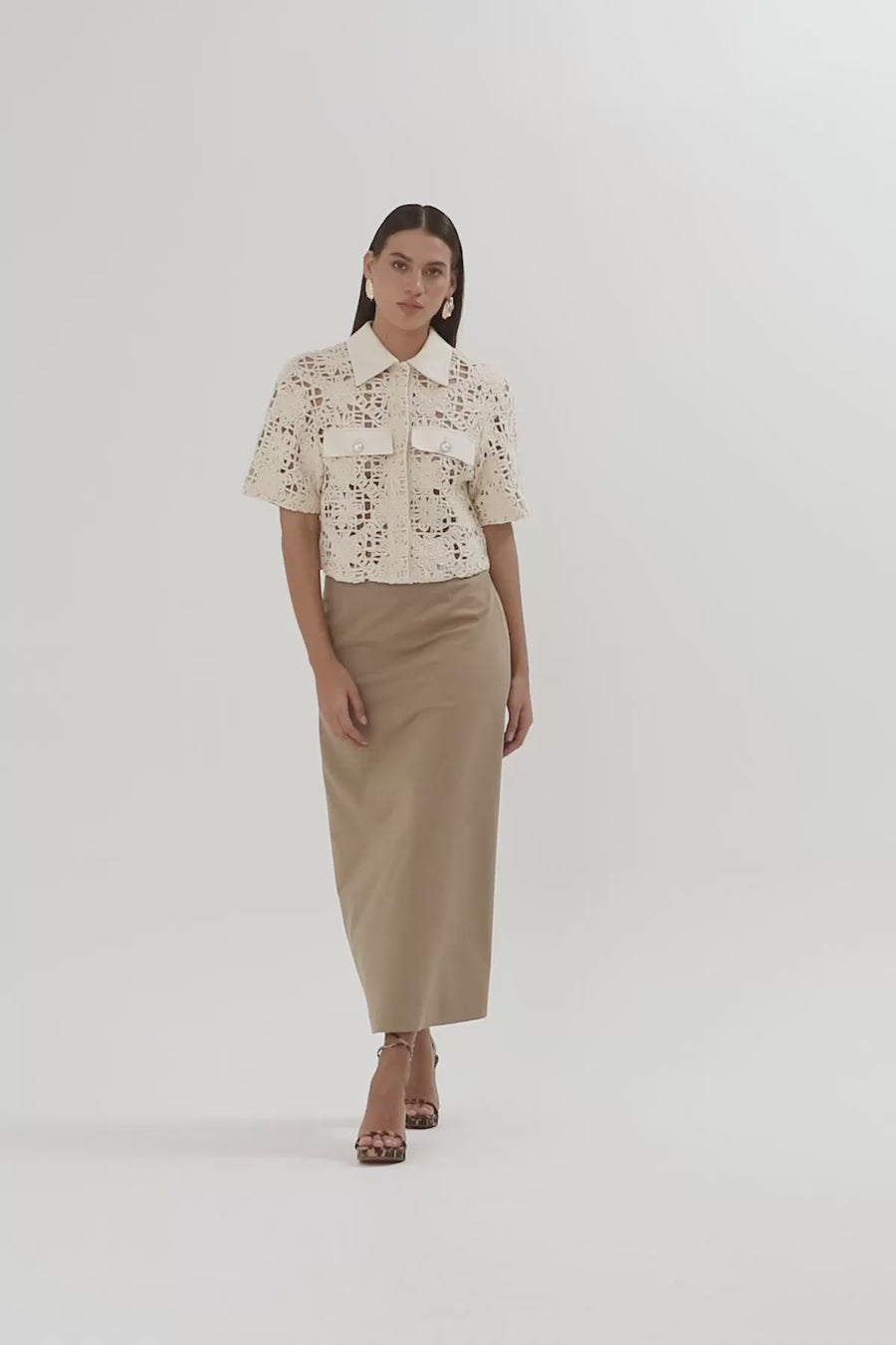 Yanları Yırtmaçlı Astarlı Midi Etek