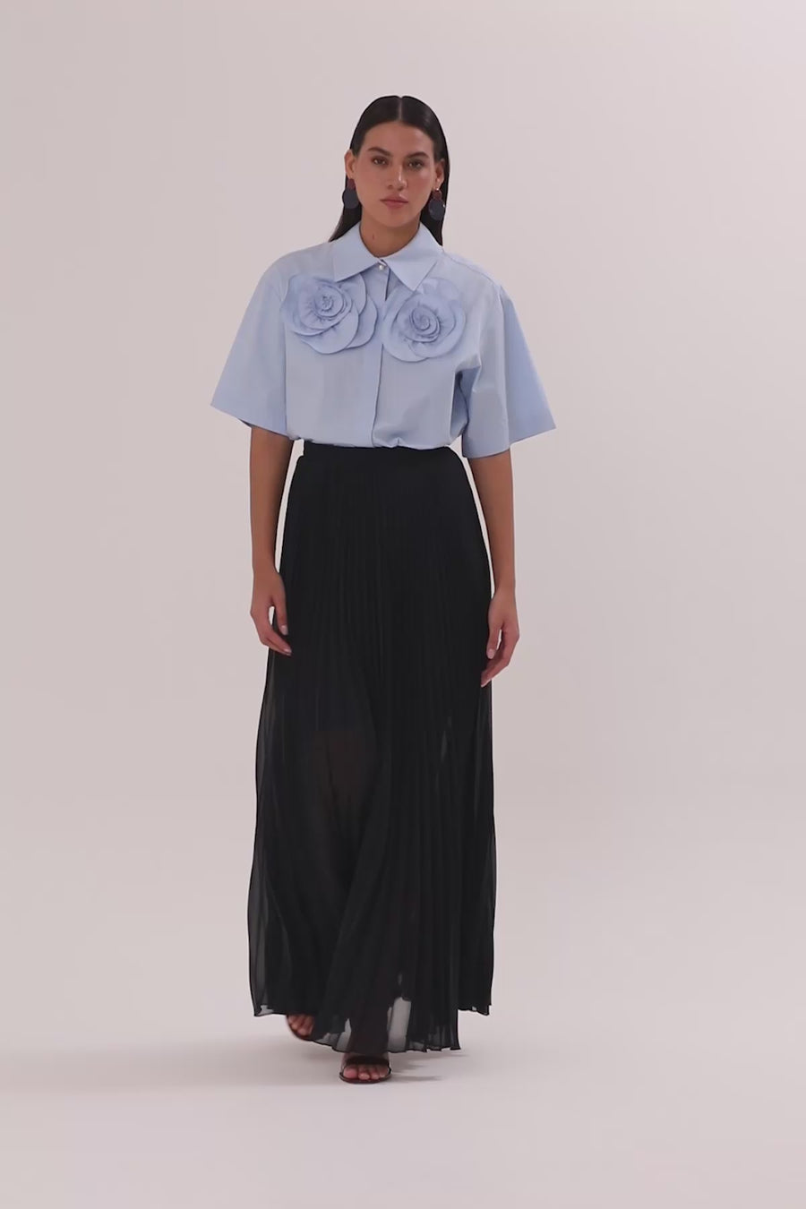 Yan Yırtmaçlı İşlemeli Uzun Elbise
