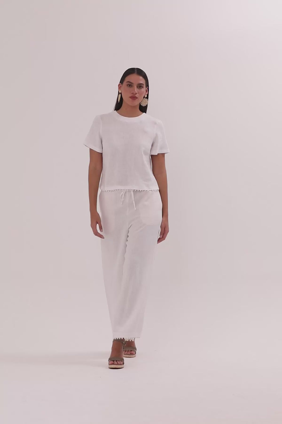 İnci İşlemeli Keten Bluz