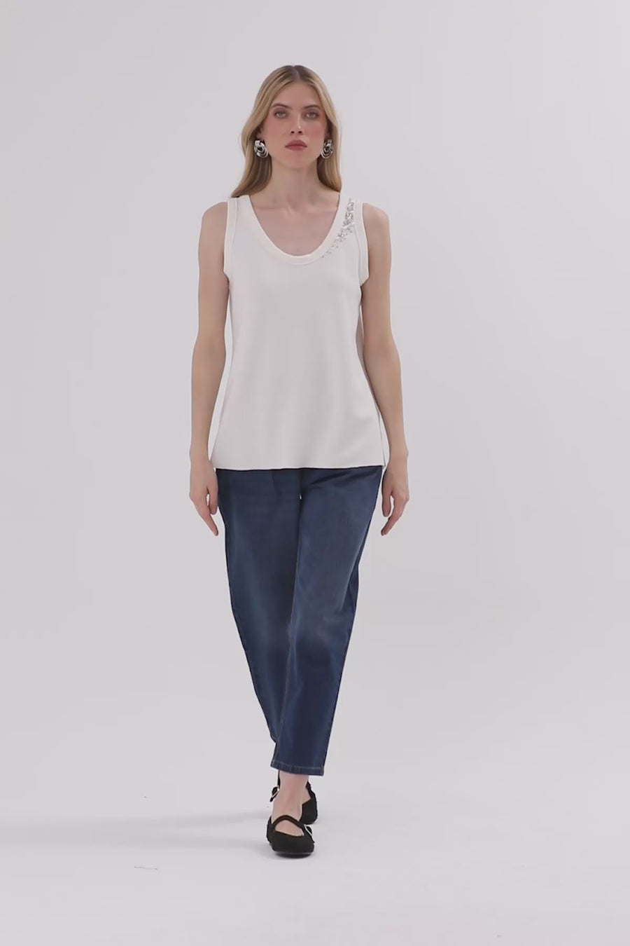 İşlemeli Sıfır Kollu Bluz