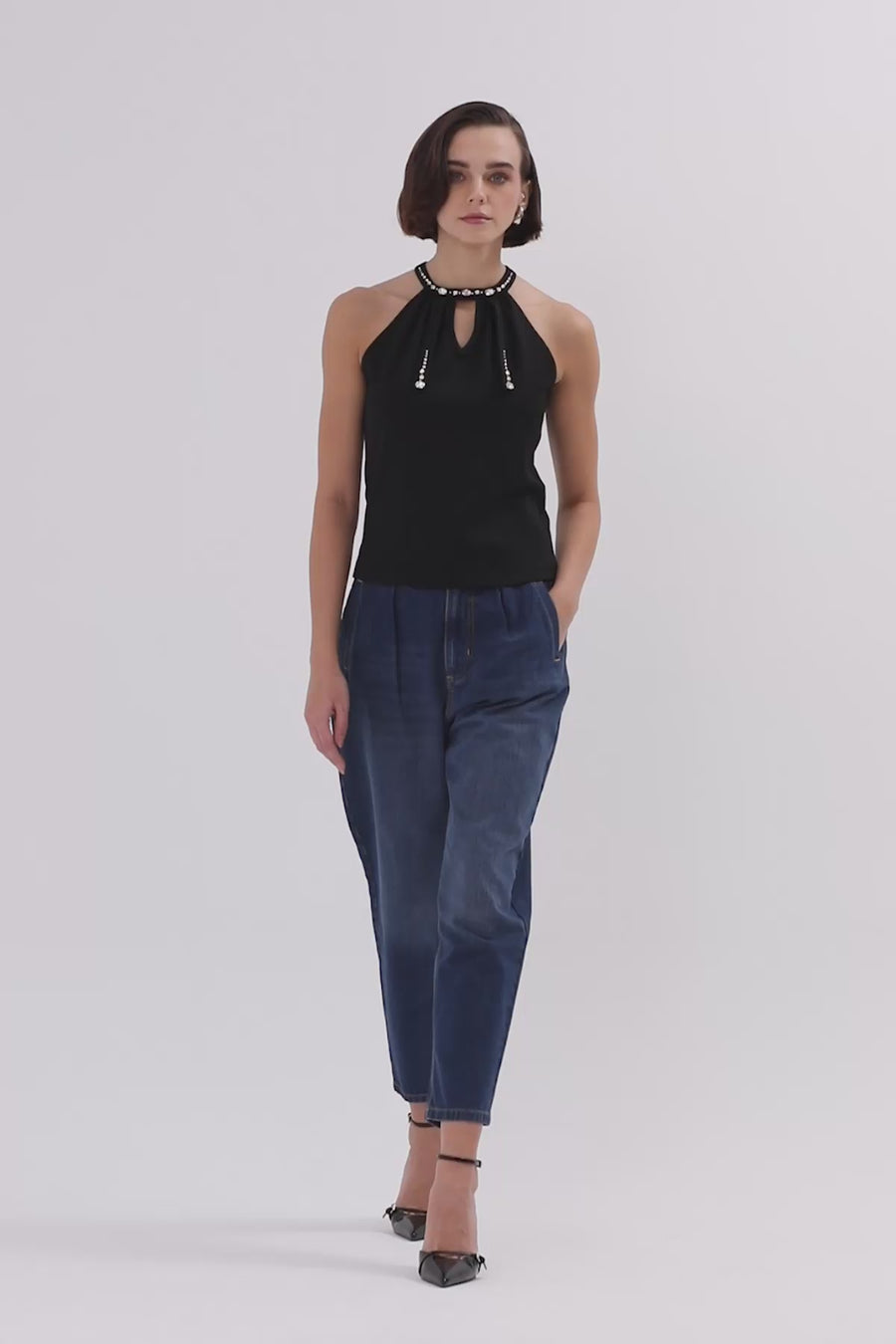 Damla Detaylı Halter Yaka Bluz