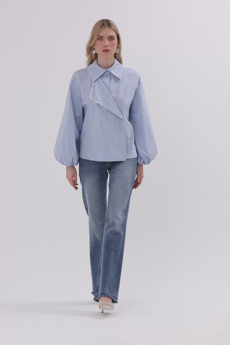 Gömlek Yakalı Pili Detaylı Bluz