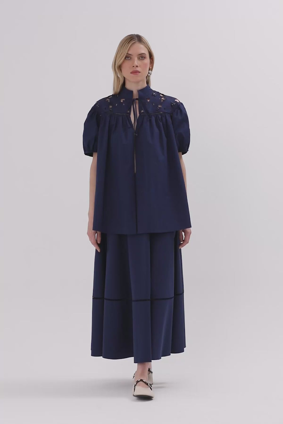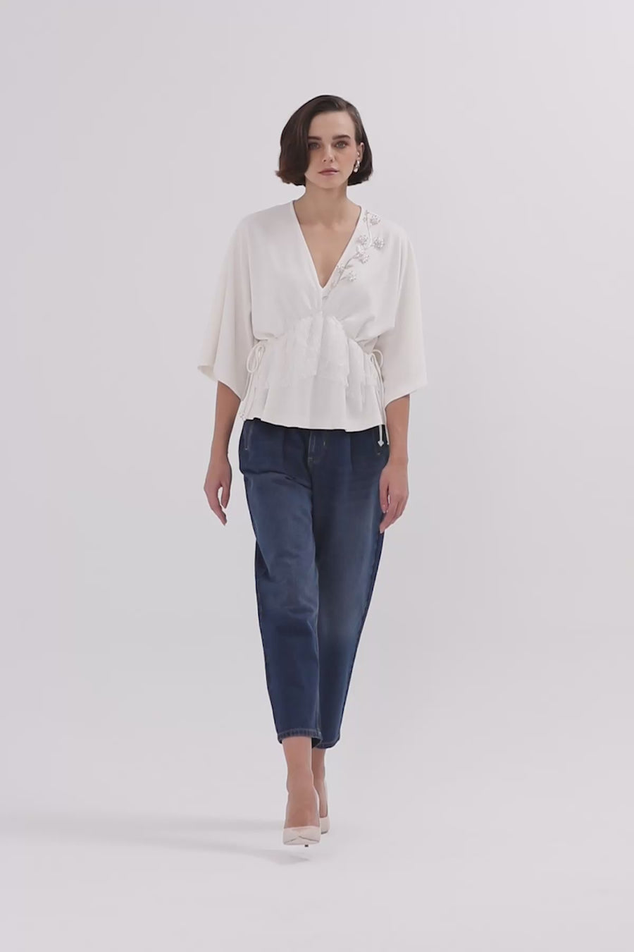 İşlemeli Önden Bağlamalı Gömlek