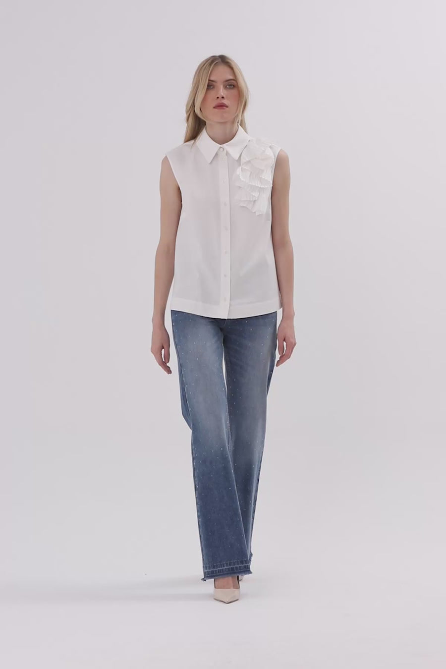 Yakası Pilise Aksesuarlı Çıkarılabilir Kolsuz Gömlek