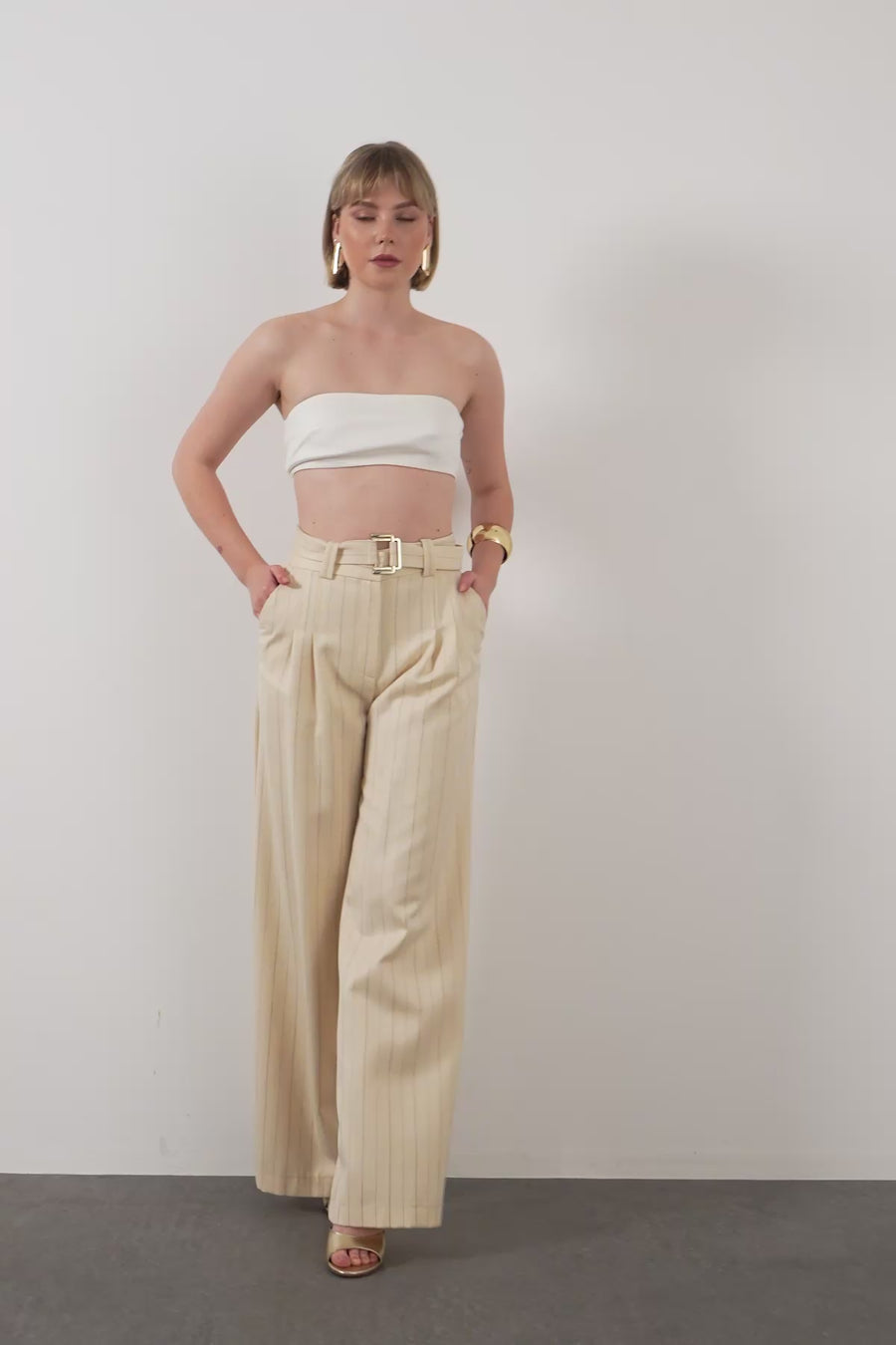Bol Paça Kemerli Çizgili Pantolon