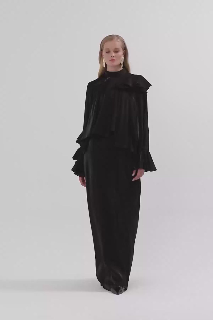 Kol Ve Omuz Fırfır Detaylı Parlak Elbise