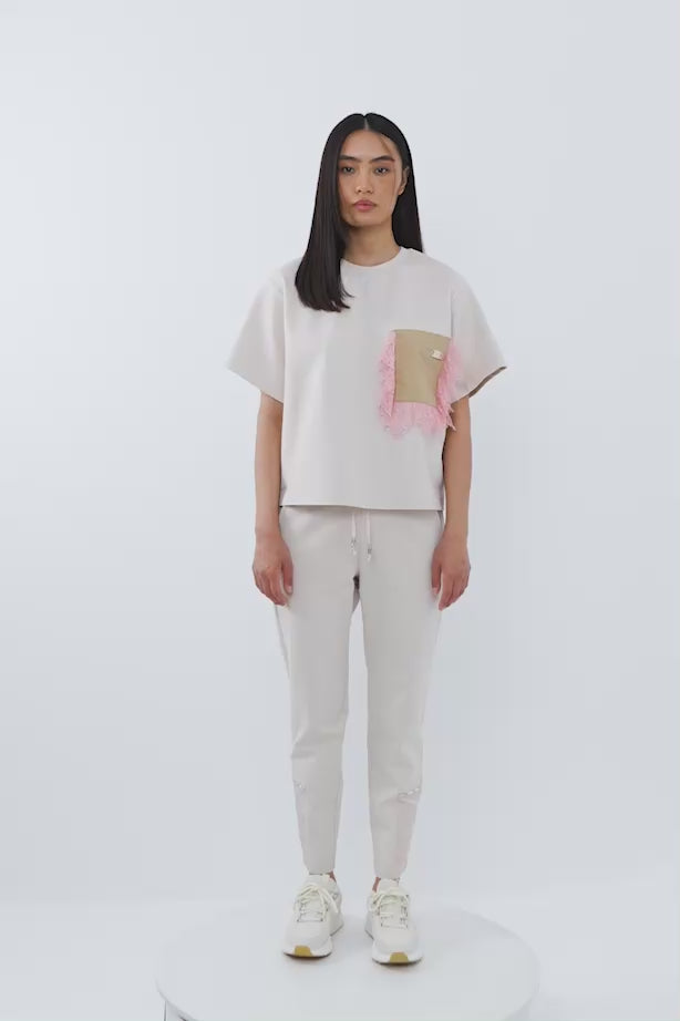 Arka Beli Lastikli Bağ Ucu Taşlı Pantolon