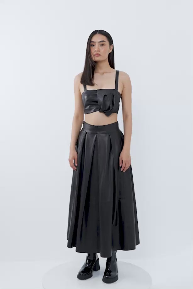 Arka Ortadan Fermuarlı Pilikaşeli Deri Etek