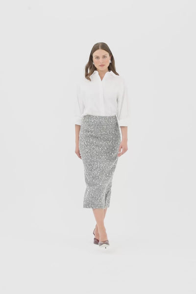 Arkadan Fermuar Kapamalı Yırtmaçlı Etek