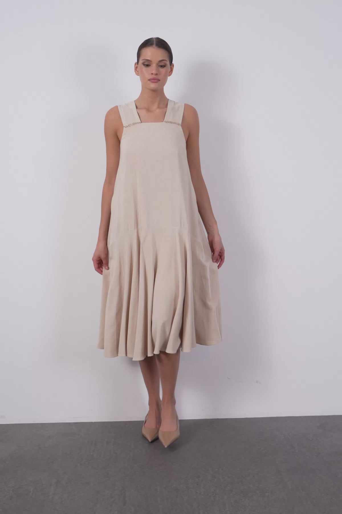 Askıları Nakışlı Ve İşlemeli Midi Boy Elbise