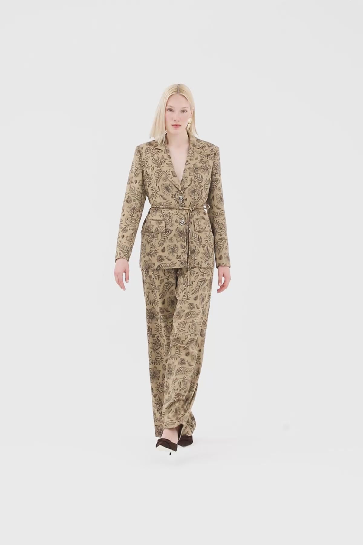 Bağlamalı Desenli Ceket Ve Pileli Pantolonlu Takım