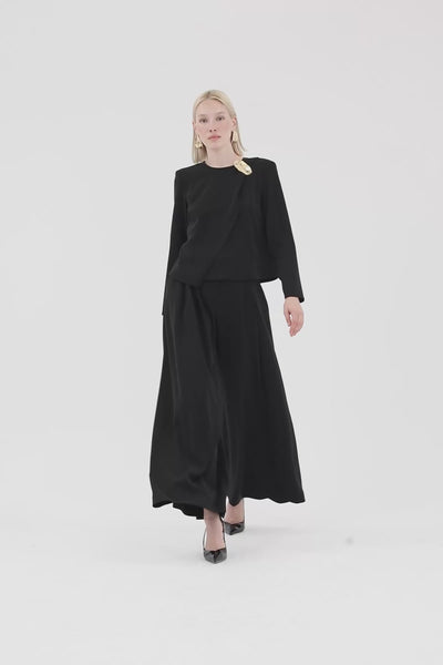 Broşlu Şal Detaylı Bluz Ve Pileli Palazzo Pantolon