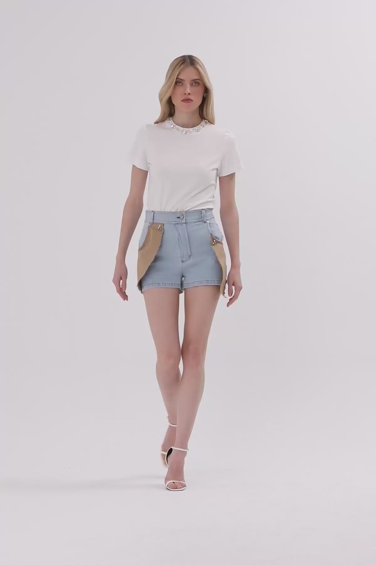 Çift Renkli Mini Jean Şort