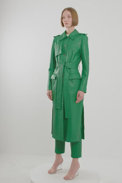 Çıtçıt Detaylı Seyyar Kuşaklı Deri Trenç