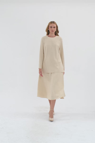 Yandan Yırtmaç Ve Yakada Boncuk Detaylı Bluz