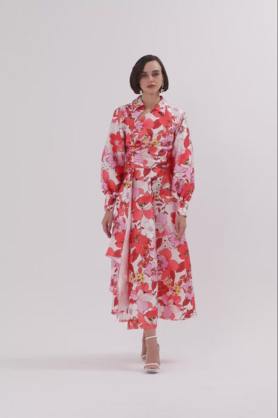 Desenli Renkli Midi Elbise